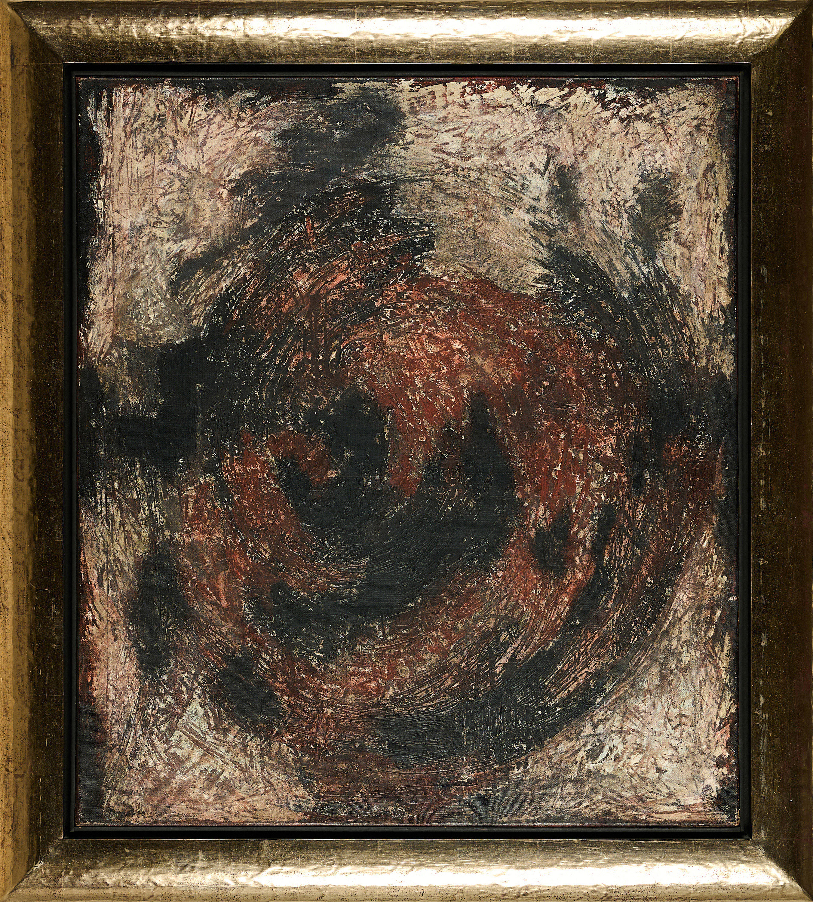 Bezeichnung: Signiert und datiert unten links sowie verso oben: Royen 62. Sowie verso mit Richtungspfeil.