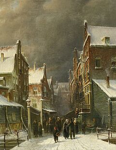 Wintertag in einer holländischen Stadt. Öl auf Leinwand. 63 x 51cm. Signiert und datiert unten rechts: P.J. Vertin f / 76. Rahmen.