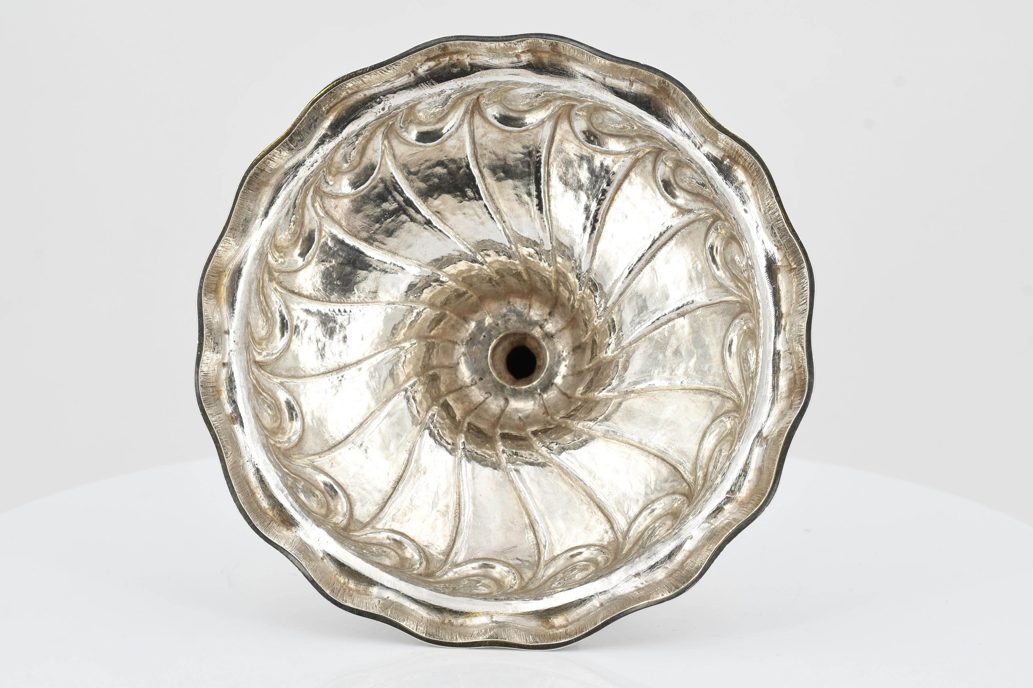 Fuß und Tropfteller des Leuchter heraldische Gravur mit Hirsch und Kreuz.