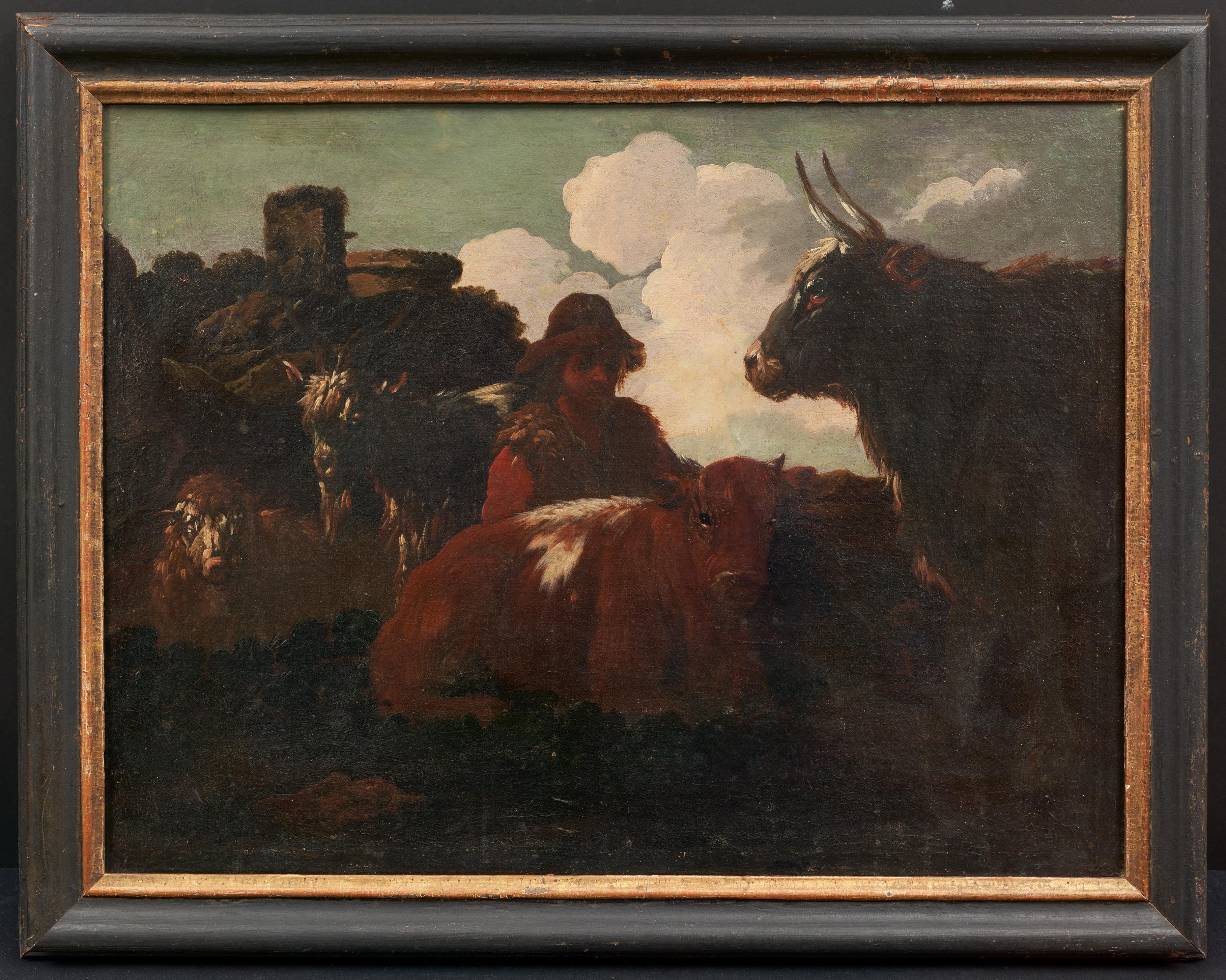 Titel: Hirte mit seinen Tieren.