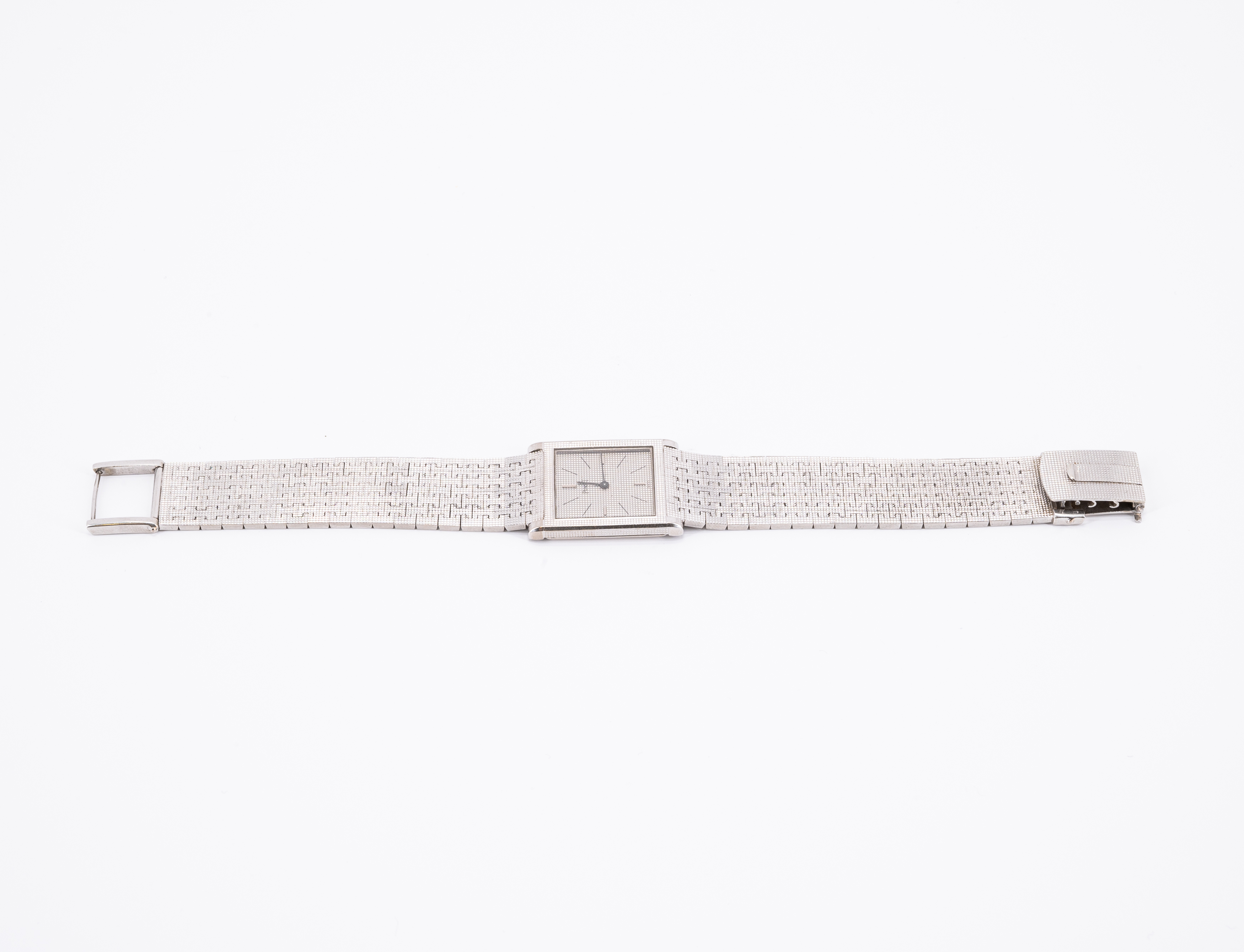 Gehäuse/Armband: 750/- Weißgold, Milanaisearmband, Zffbl. silbern, Zeiger und Indizes silbern.