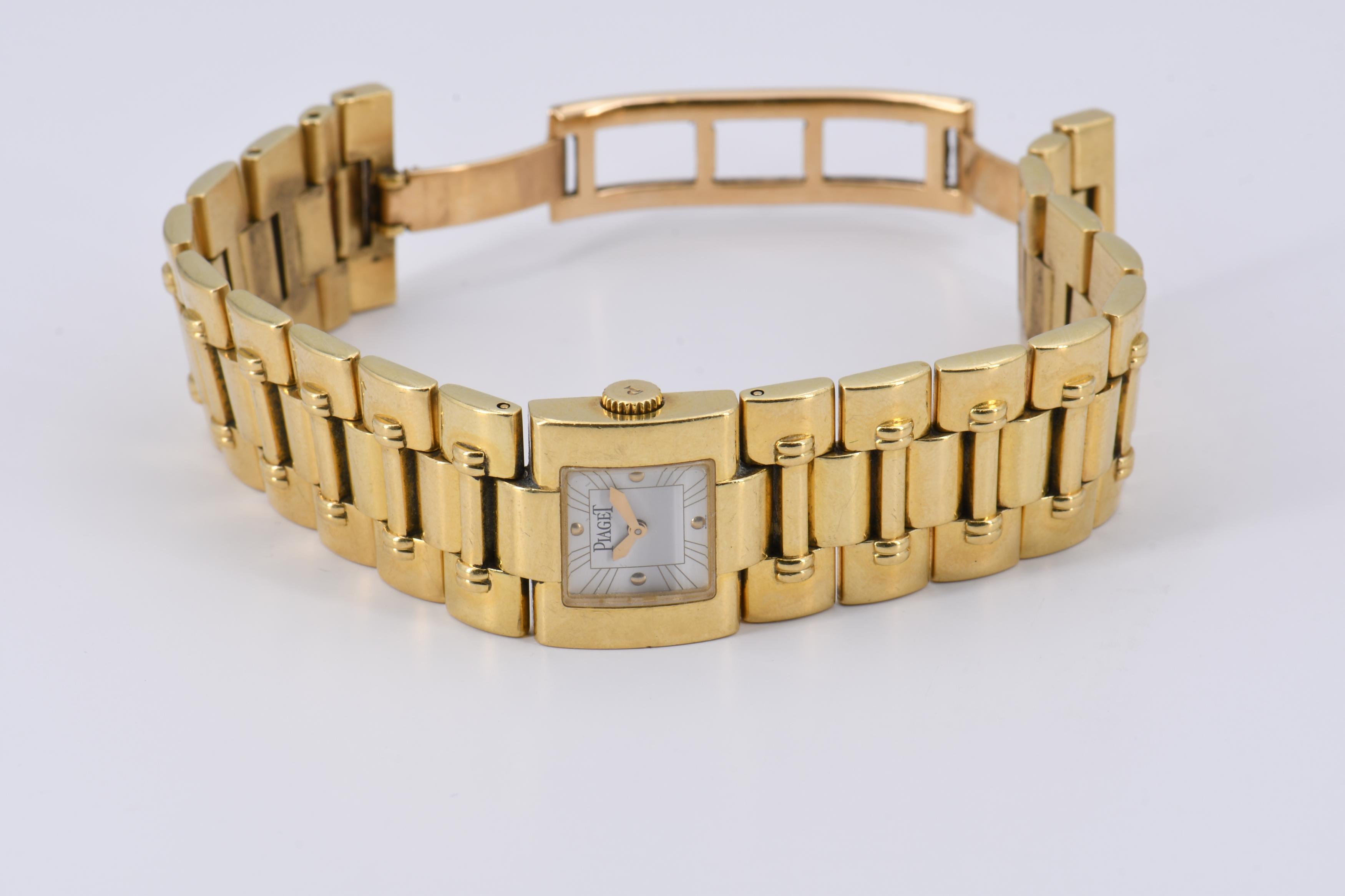 Gehäuse/Armband: 750/- Gelbgold, Doppelfaltschließe, Zffbl. weiß lackiert, Indizes/Zeiger golden.