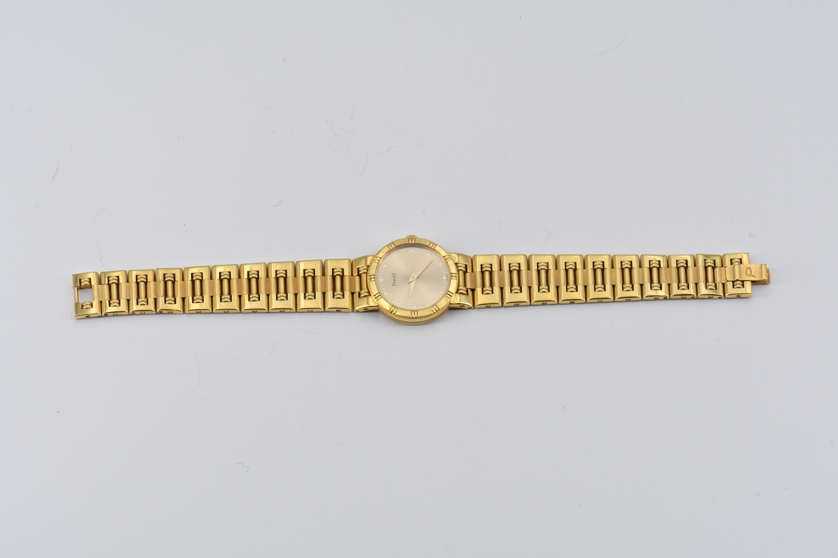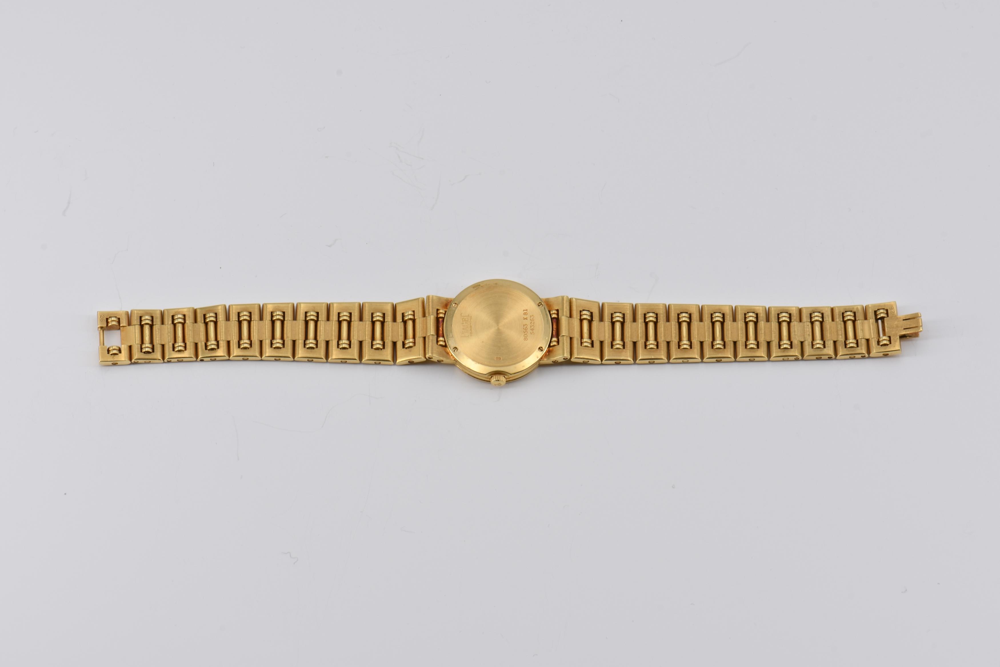 Gehäuse/Armband: 750/- Gelbgold, Punze, Gliederarmband, Zffbl. champagnerfarben, Zeiger und Indizes golden.
