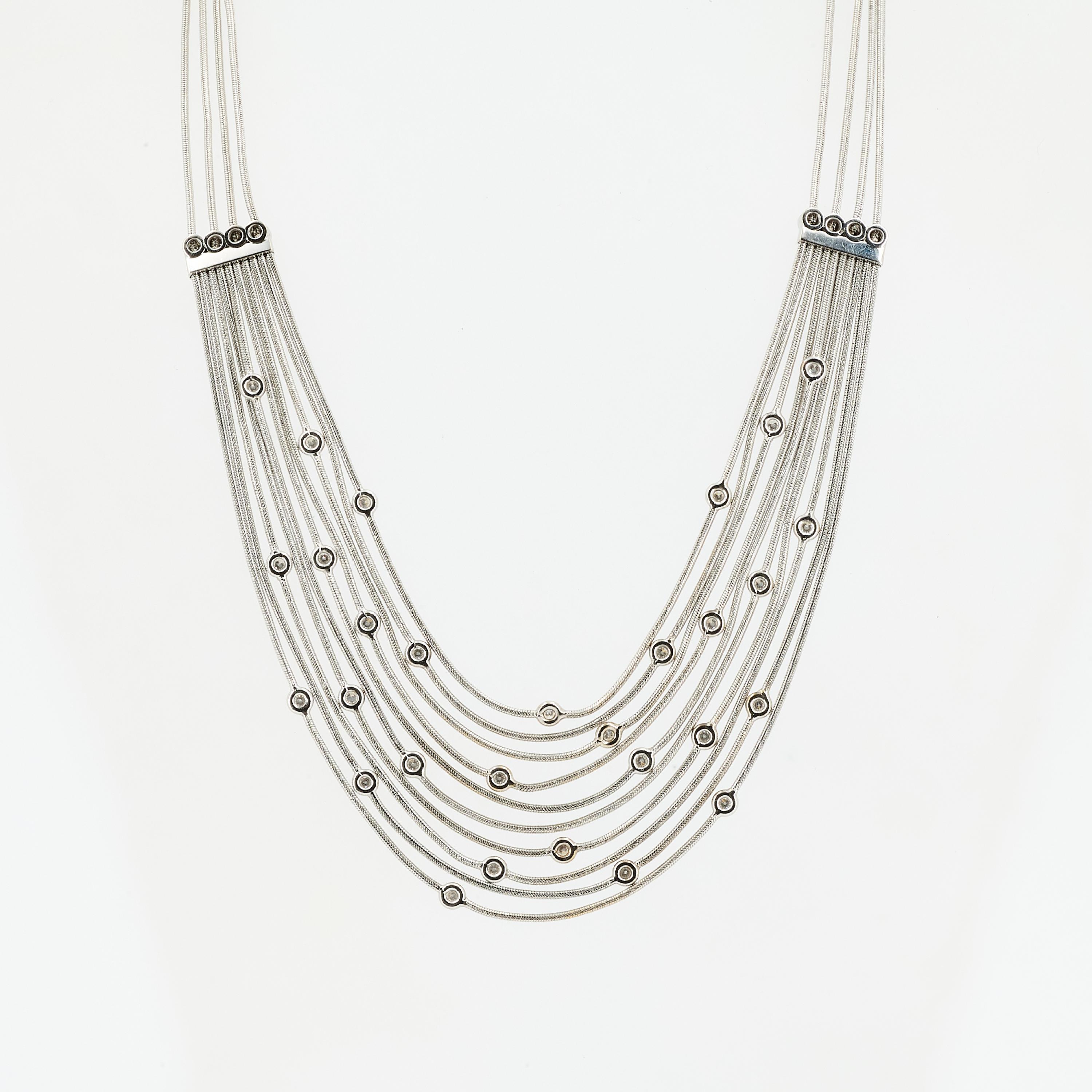 Beschreibung: Signiert "Piero Milano". Anschmiegsames, mehrreihiges Collier aus zarten Schlangenketten,