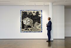 Das hier vorgestellte Werk zeugt von einer Dynamik, welche die Faszination des Künstlers zur fernöstlichen Kalligraphie widerspiegelt. Die in leuchtendem Blau ausgeführten "Randbemerkungen" geben dem in schwarz und weiß gehaltenen Werk zusätzliche Farbigkeit und könnten auf Wasser und somit auf den Titel verweisen, der mit "Das Auge des Brunnens" übersetzt werden kann.
