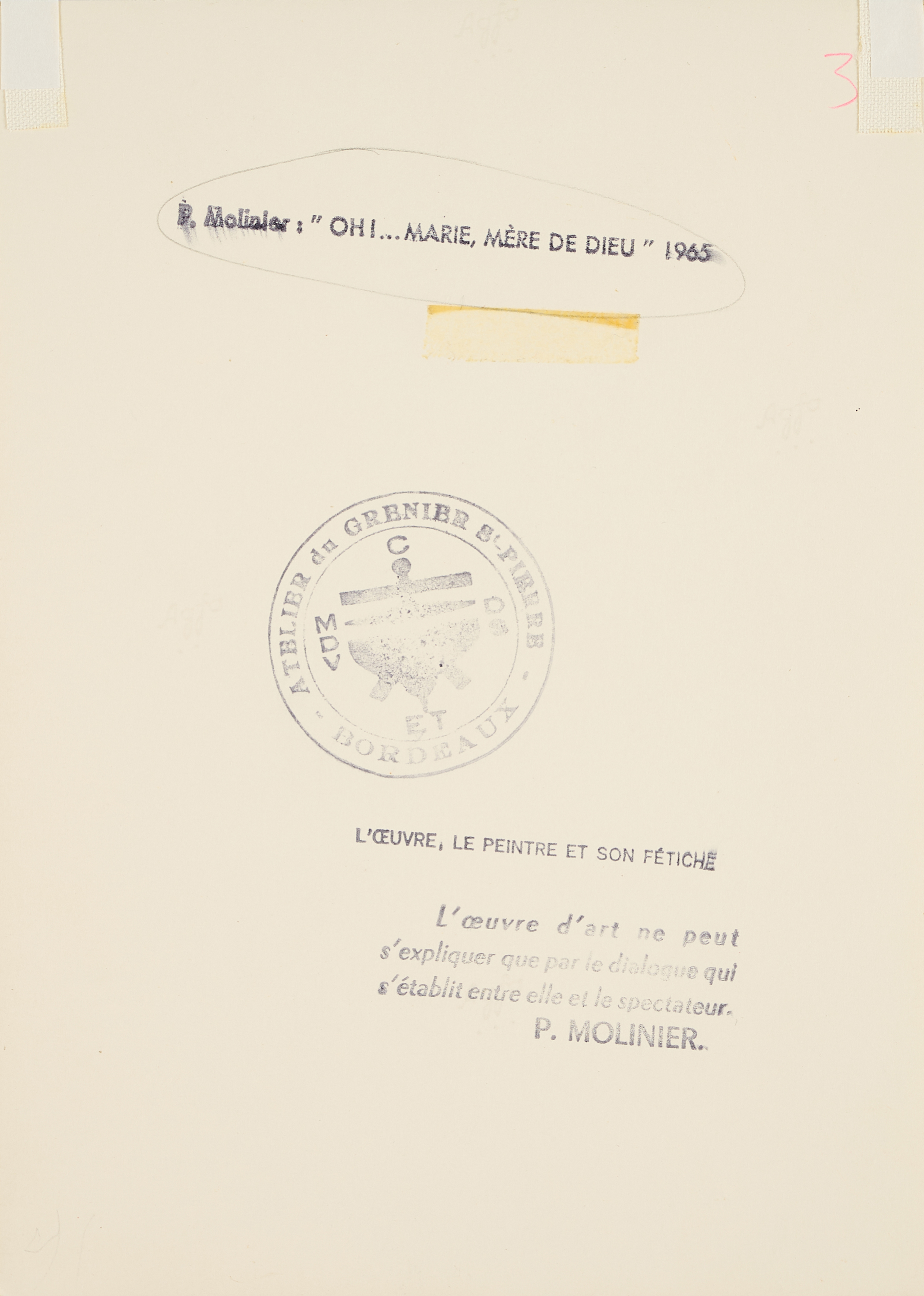 Das auf der Fotografie dargestellt Gemälde ist "Oh! Marie, Mère de Dieu" von 1965.