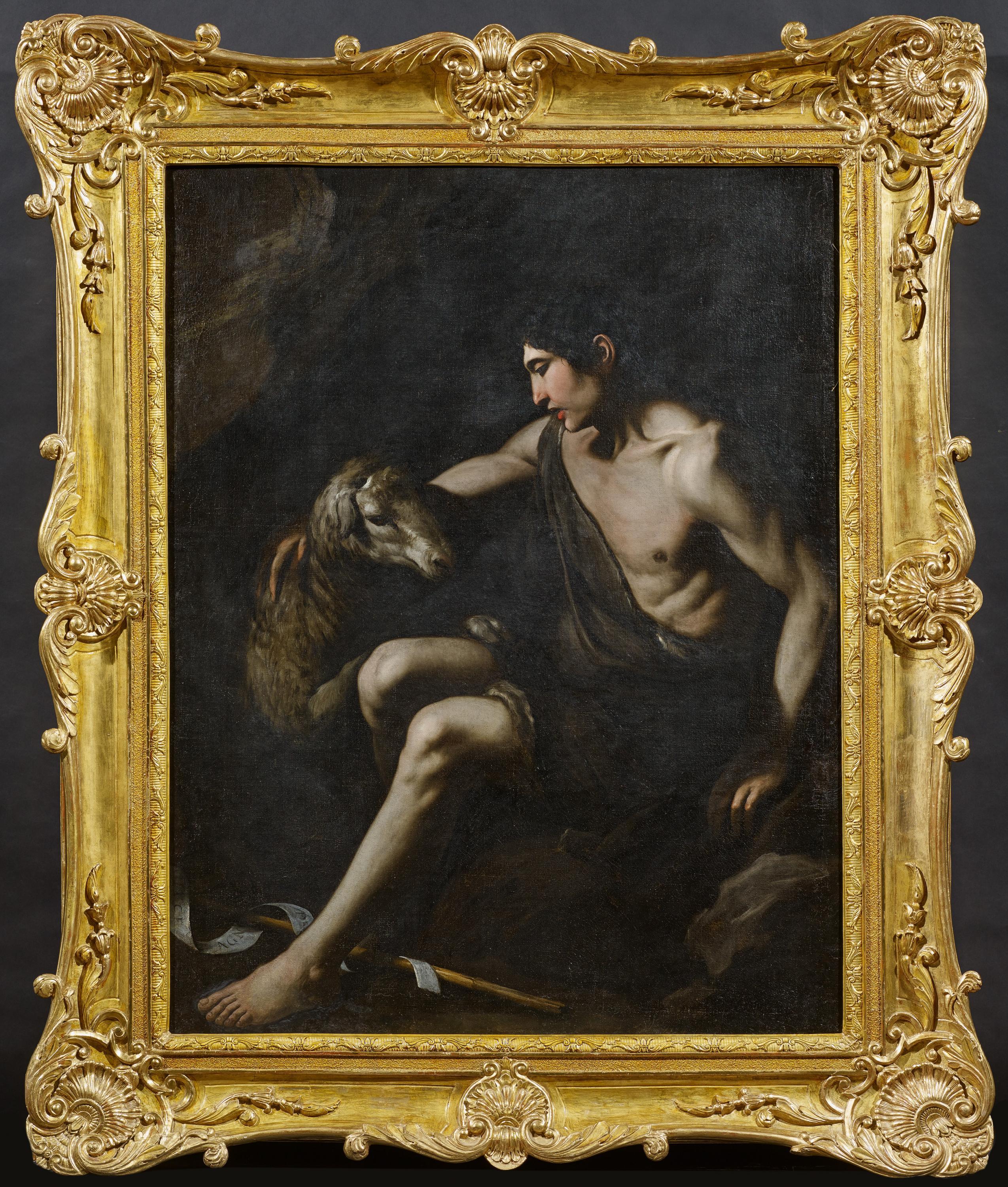 Dieses Gemälde, das den jungen Heiligen Johannes den Täufer mit dem Lamm Gottes darstellt, wird im Gemäldeinventar vom 19. April 1865 von Maria Carolina Ferdinanda Luisa delle Due Sicilie, Herzogin von Berry durch Heirat, als "Monrealèse: Saint-Jean assis, streichelnder Sohn mouton" erwähnt. Diese Zuschreibung wurde von Riccardo Lattuada bestätigt, der angibt, dass es sich um ein jugendliches Werk des sizilianischen Künstlers handelt.
