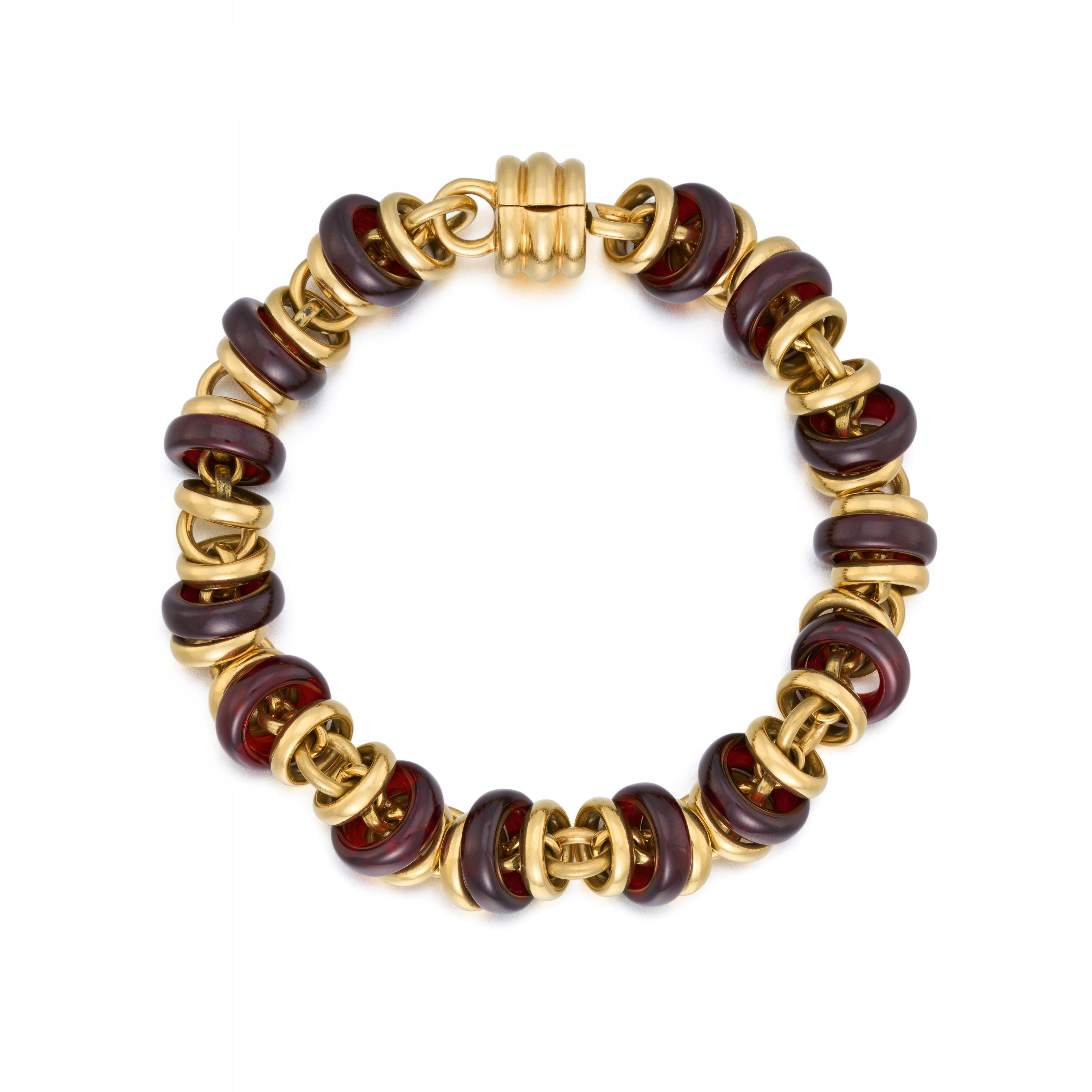 Edelsteine: 14 Farbstein-Ringe, wohl Granat, Ø 11,4 mm.