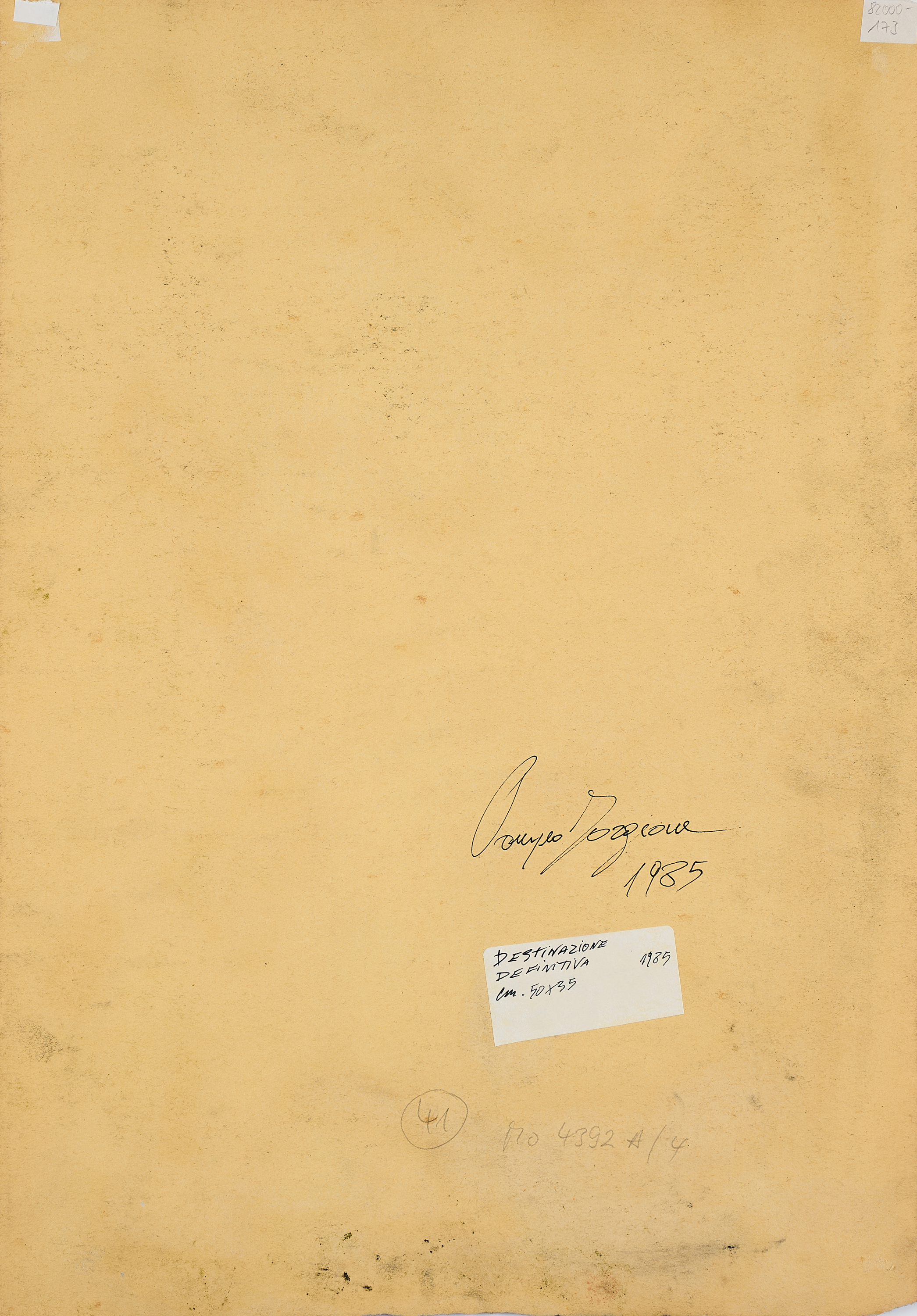 Bezeichnung: Signiert und datiert unten mittig: Forgione 85. Nochmals signiert und datiert verso mittig: Pompeo Forgione 1985.