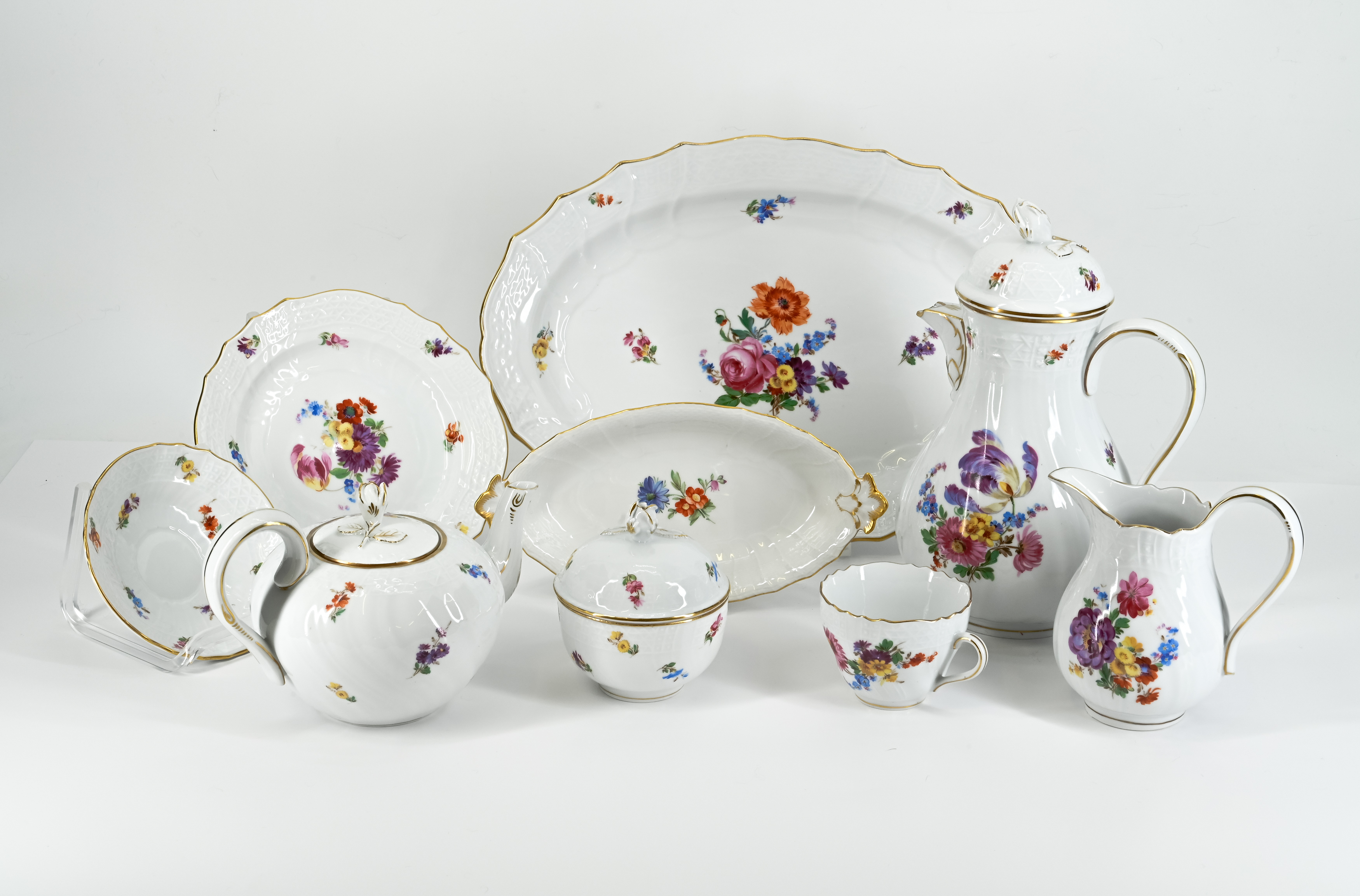 GROßES SPEISE-, KAFFEE- UND TEESERVICE MIT BLUMENDEKOR.