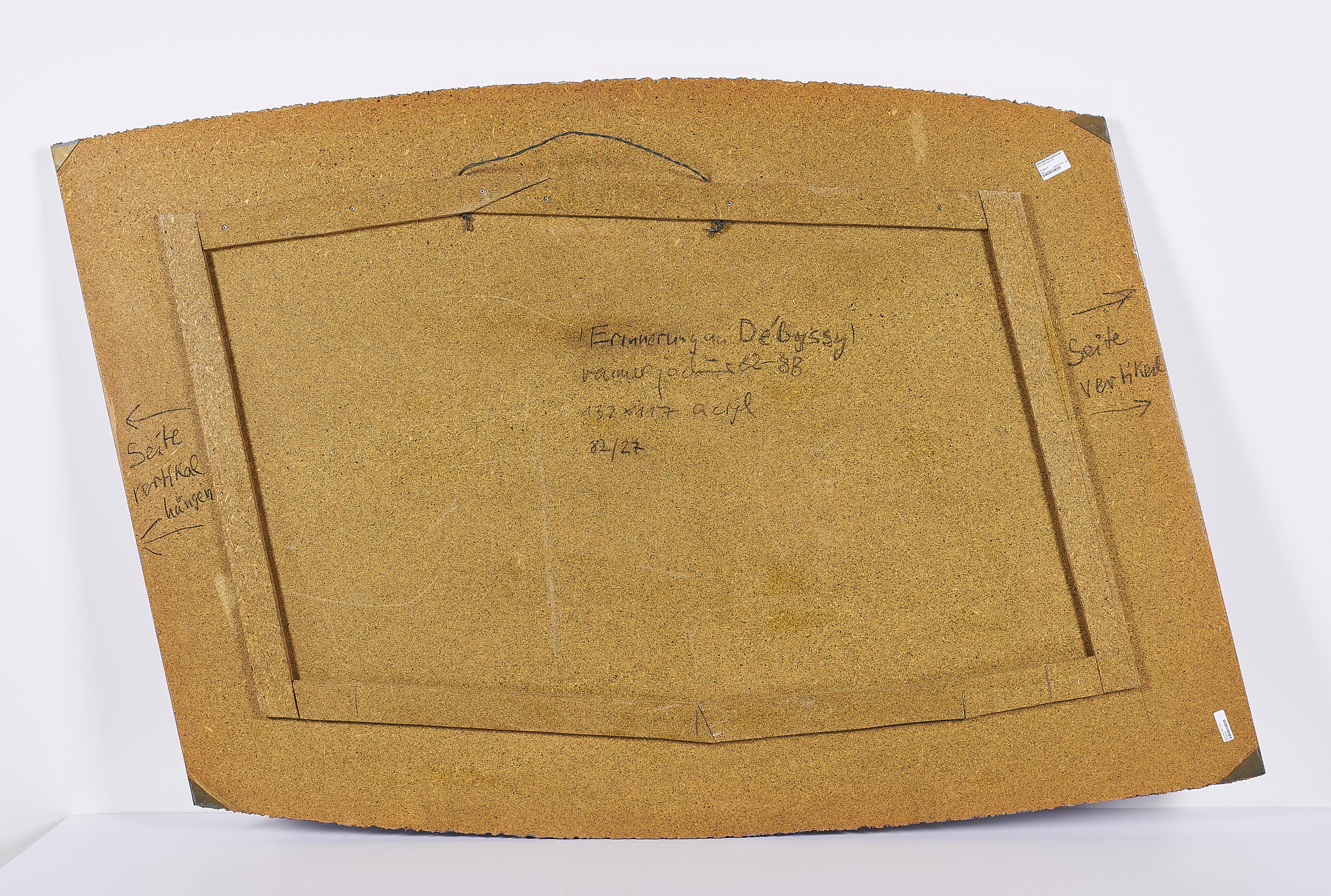 Bezeichnung: Betitelt, signiert, datiert und bezeichnet verso: "Erinnerung an Débussy" raimer jochims 82-88 132 x 117 acryl 82/27.