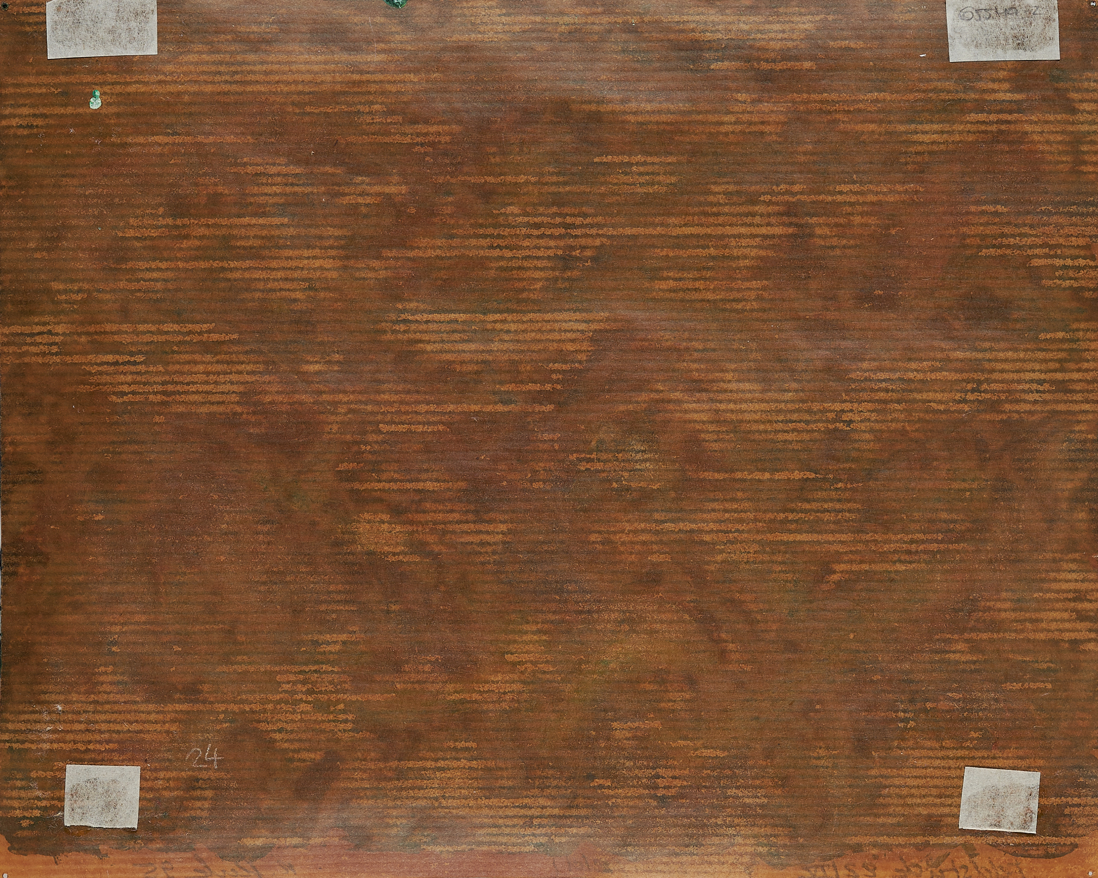 Blatt arbeitsbedingt gewellt. Stecknadellöcher in den Ecken. Verso Ölfarbe durchgeschlagen. Reste alter Montierung in den Ecken. Ansonsten befindet sich die Arbeit in einem sehr guten Zustand.