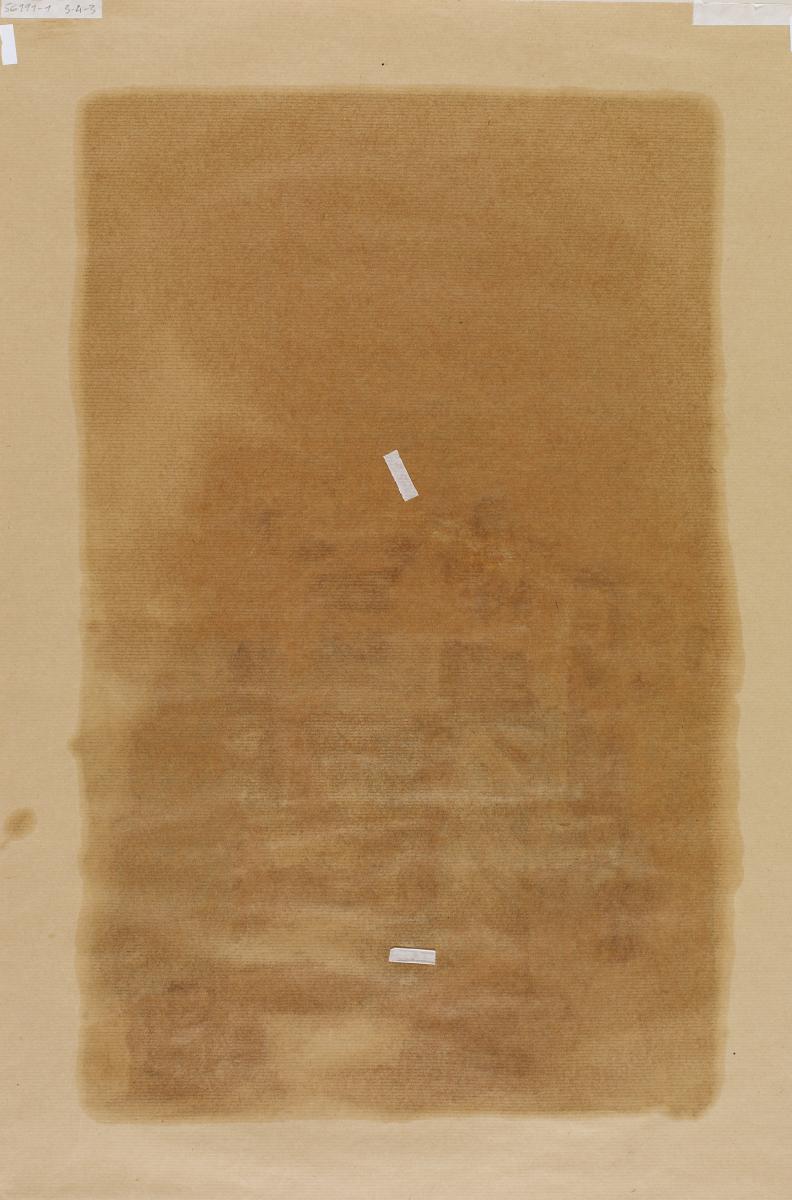 "LKW, Rückseite III (Gegenlicht)". 1978. Mischtechnik auf braunem Packpapier. 73,5 x 49cm. Signiert und datiert unterhalb der Darstellung rechts: Ralph Fleck 78. Betitelt unterhalb der Darstellung links. Rahmen.