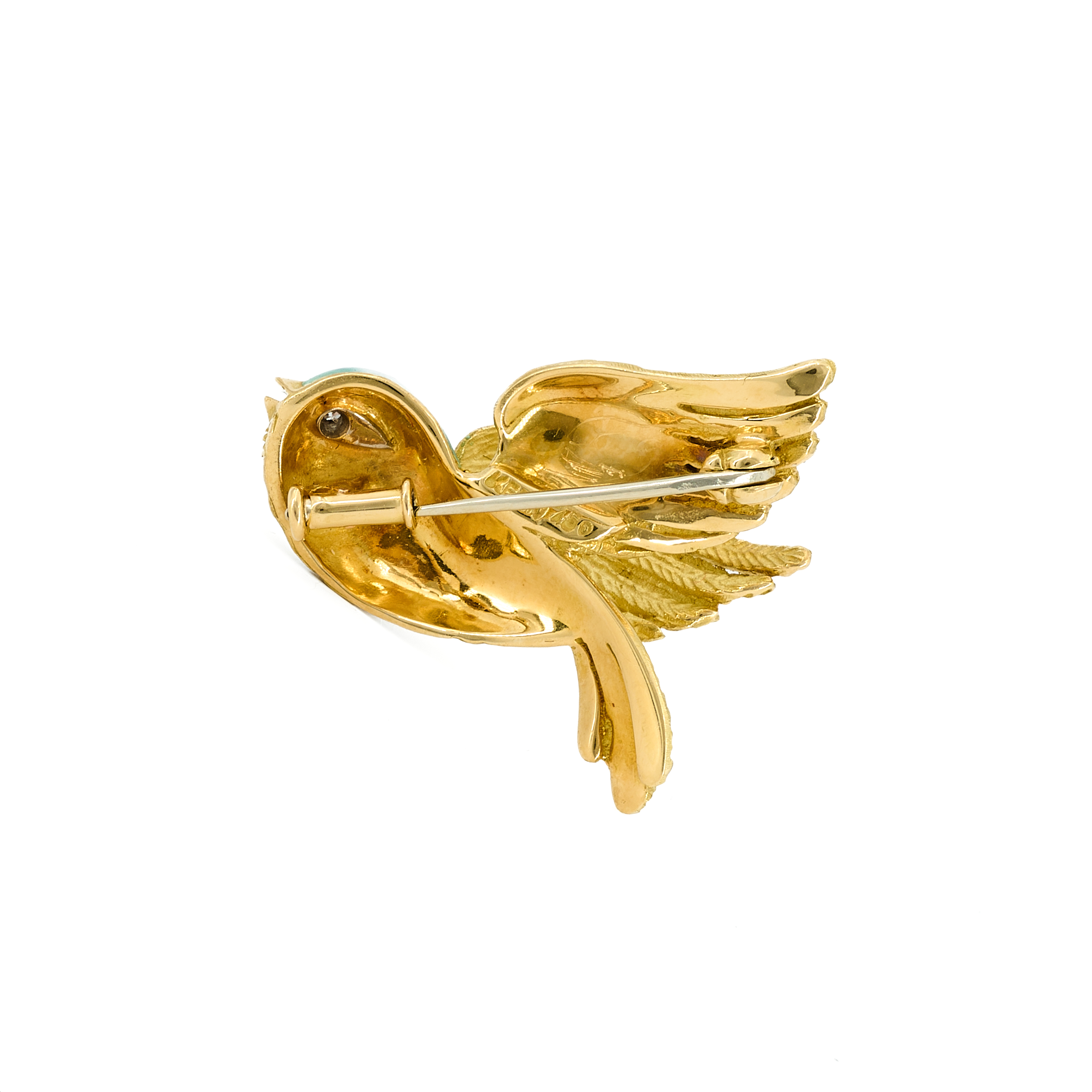 Beschreibung: Filigrane, dreidimensional-gearbeitete Vogel-Brosche.