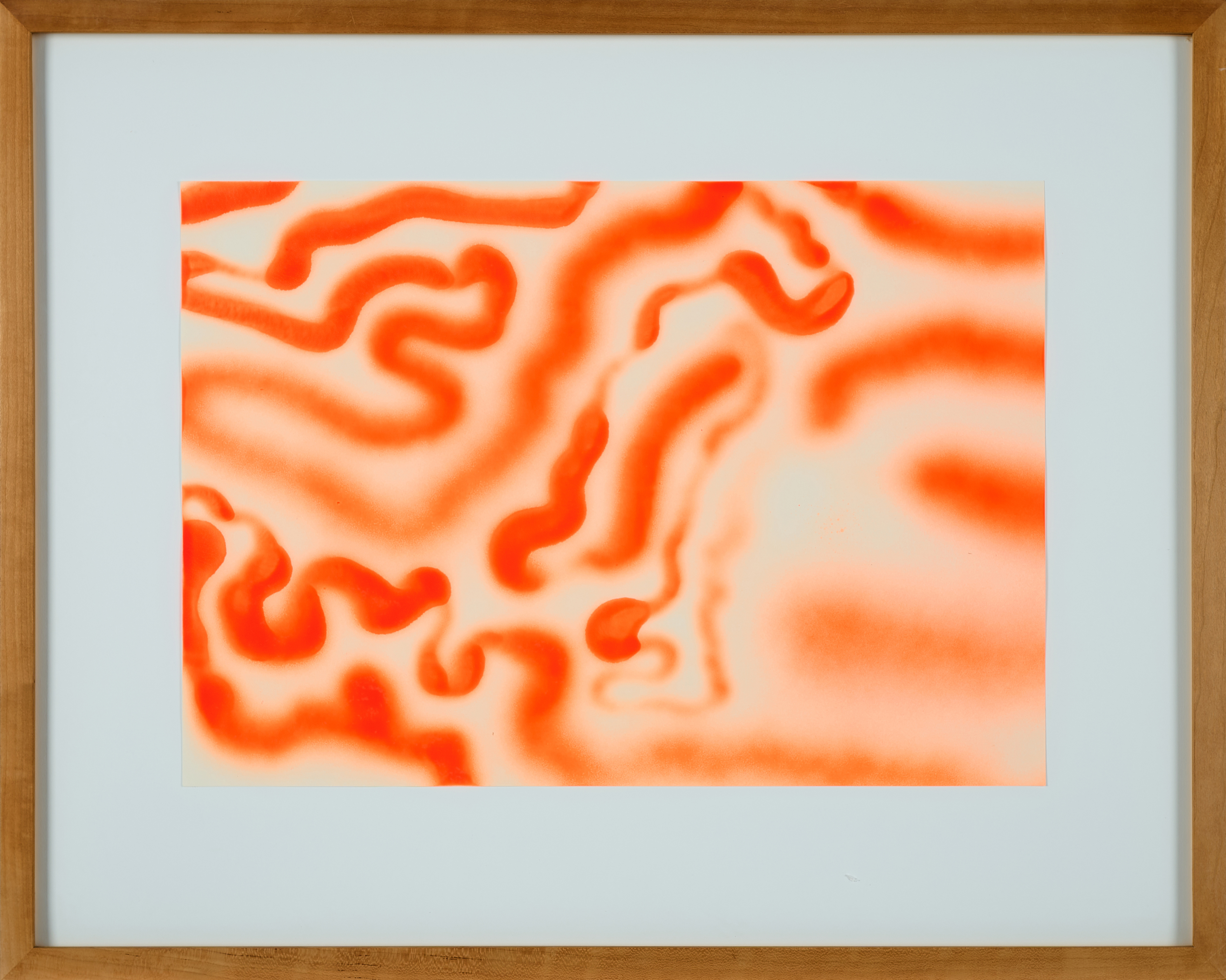 Herstellungsbedingt leicht gewellt. Verso fest mit doppelseitigem Klebeband auf Rückwand geklebt. Ansonsten guter Zustand. Im Rahmen beschrieben.