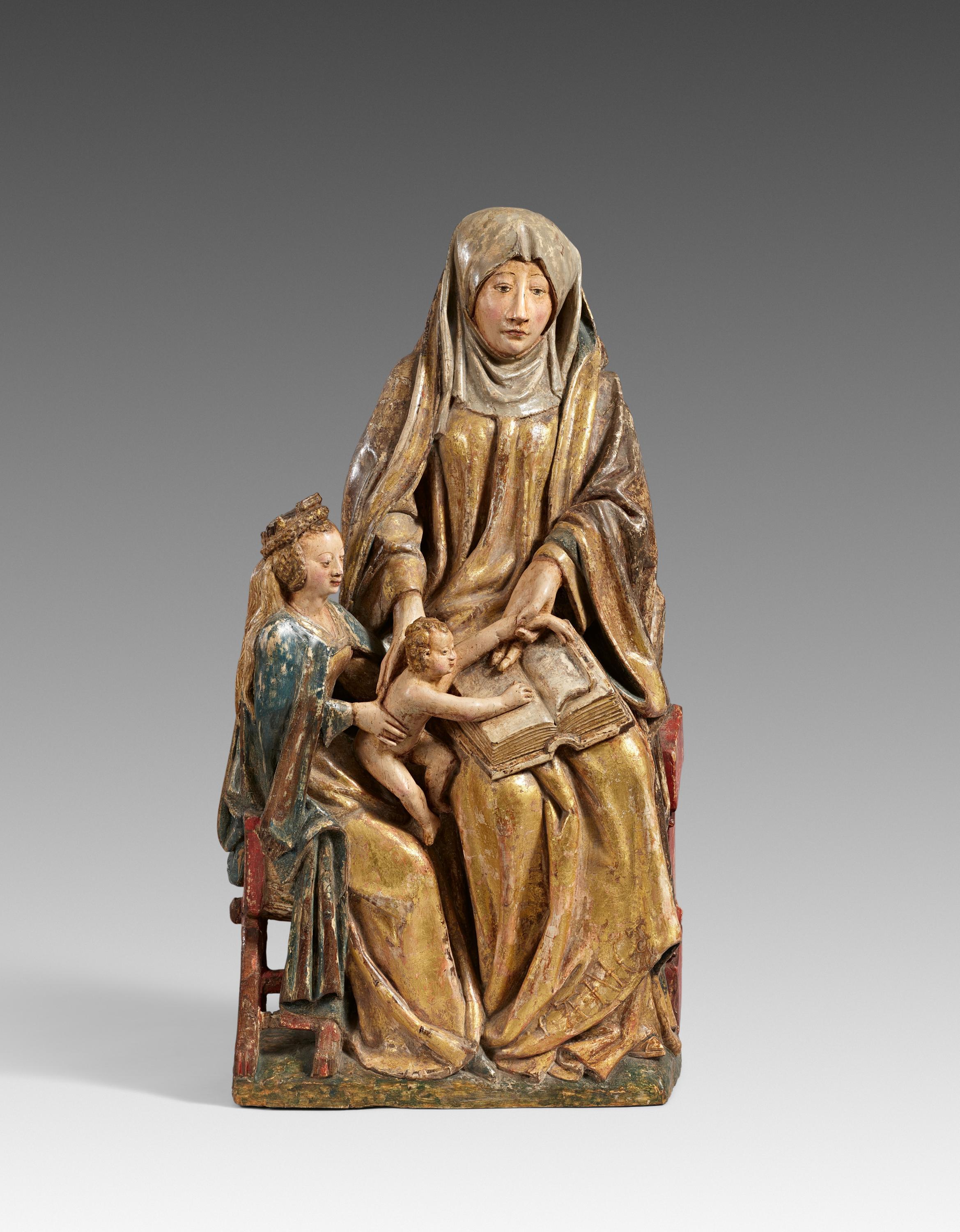 Technik: Obstbaumholz, rückseitig ausgehöhlt, farbig gefasst. Fassung übergangen.