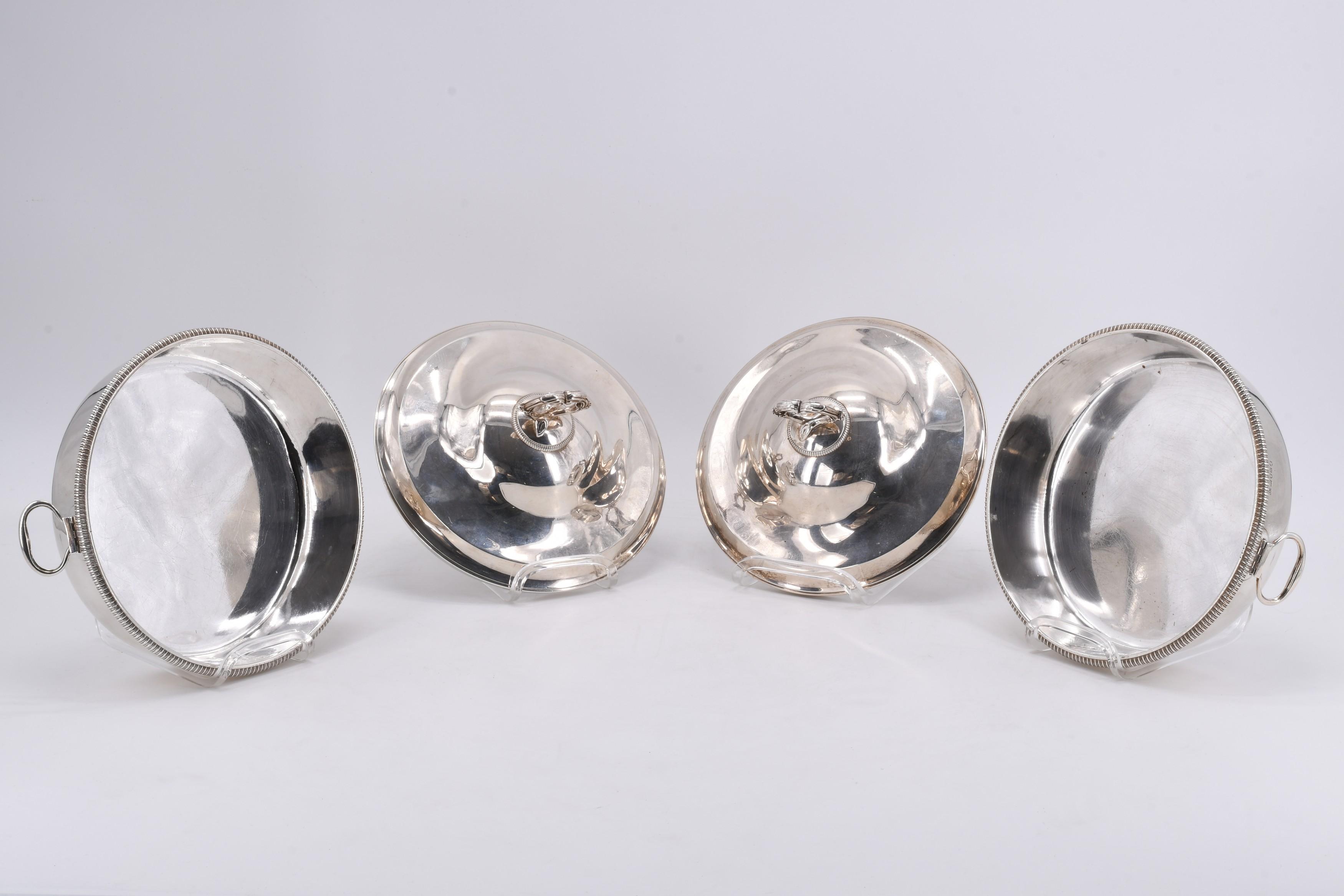 Beschreibung: Jeweils godronierter Rand und an den Seiten scharnierte Griffe.
