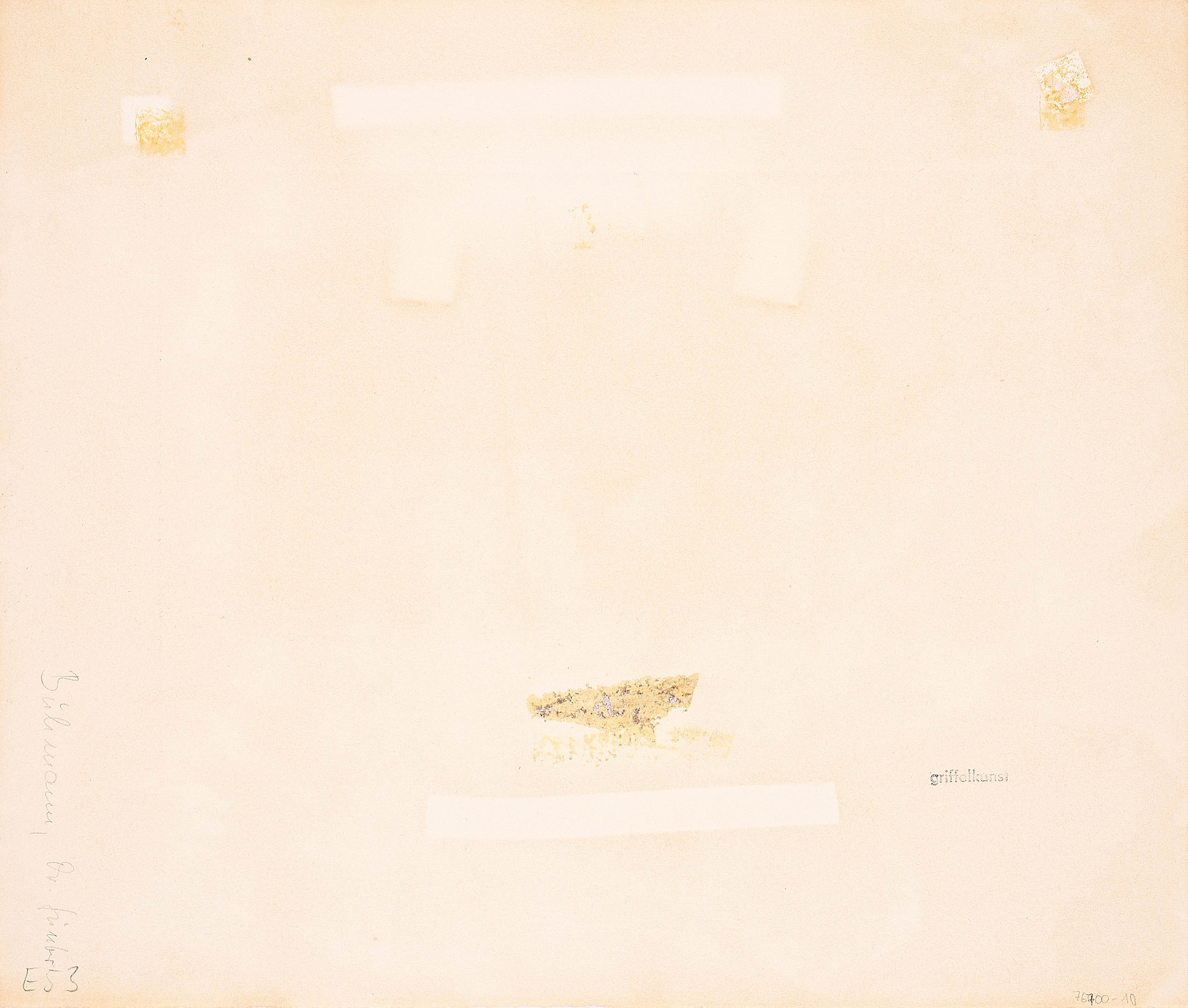 Ein minimaler Stockfleck in der Darstellung rechts. Minimal gebräunt, leicht gebräunt an den Kanten. Verso unregelmäßig gebräunt sowie Spuren alter Montierung. Ansonsten guter Zustand.
