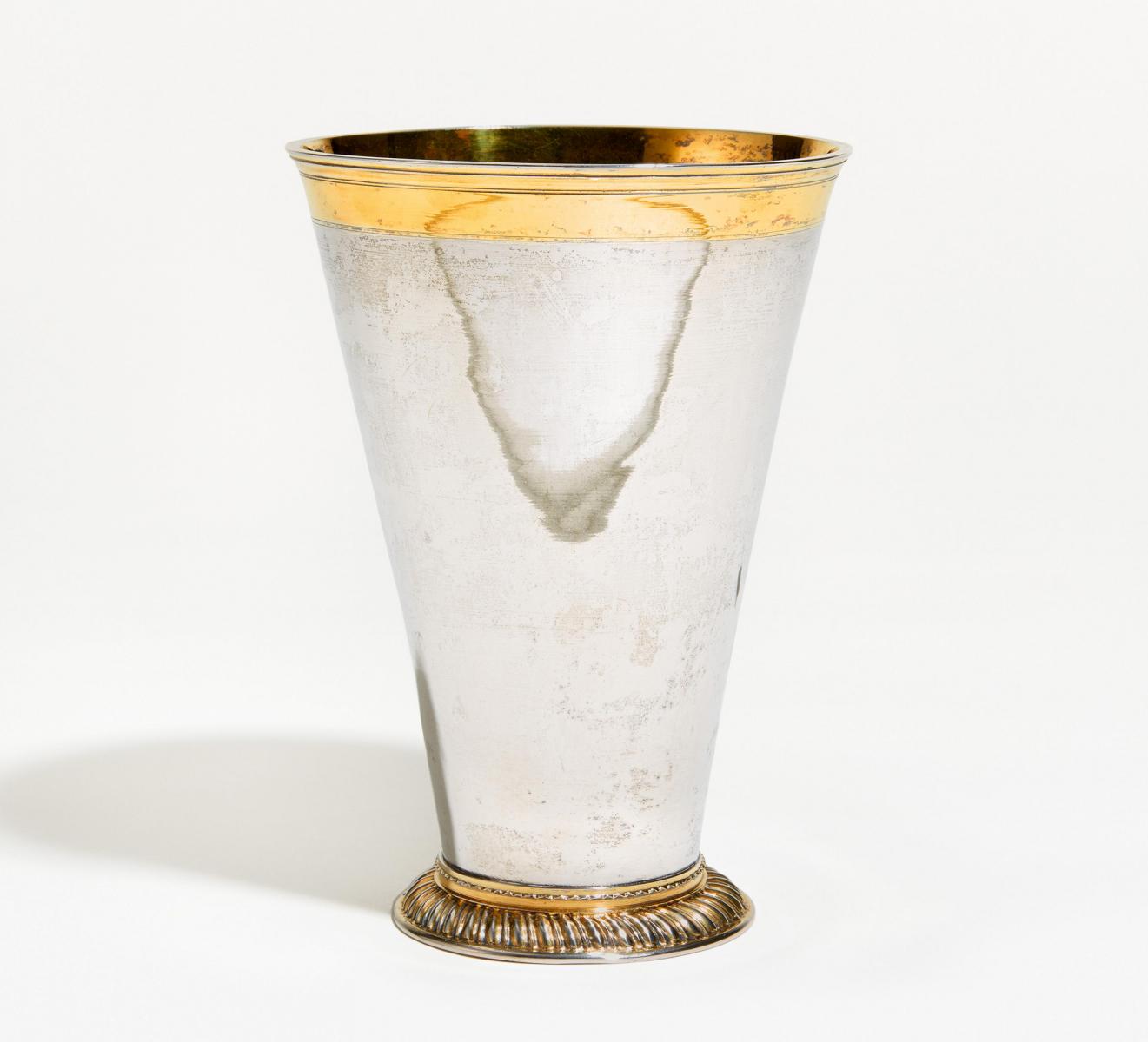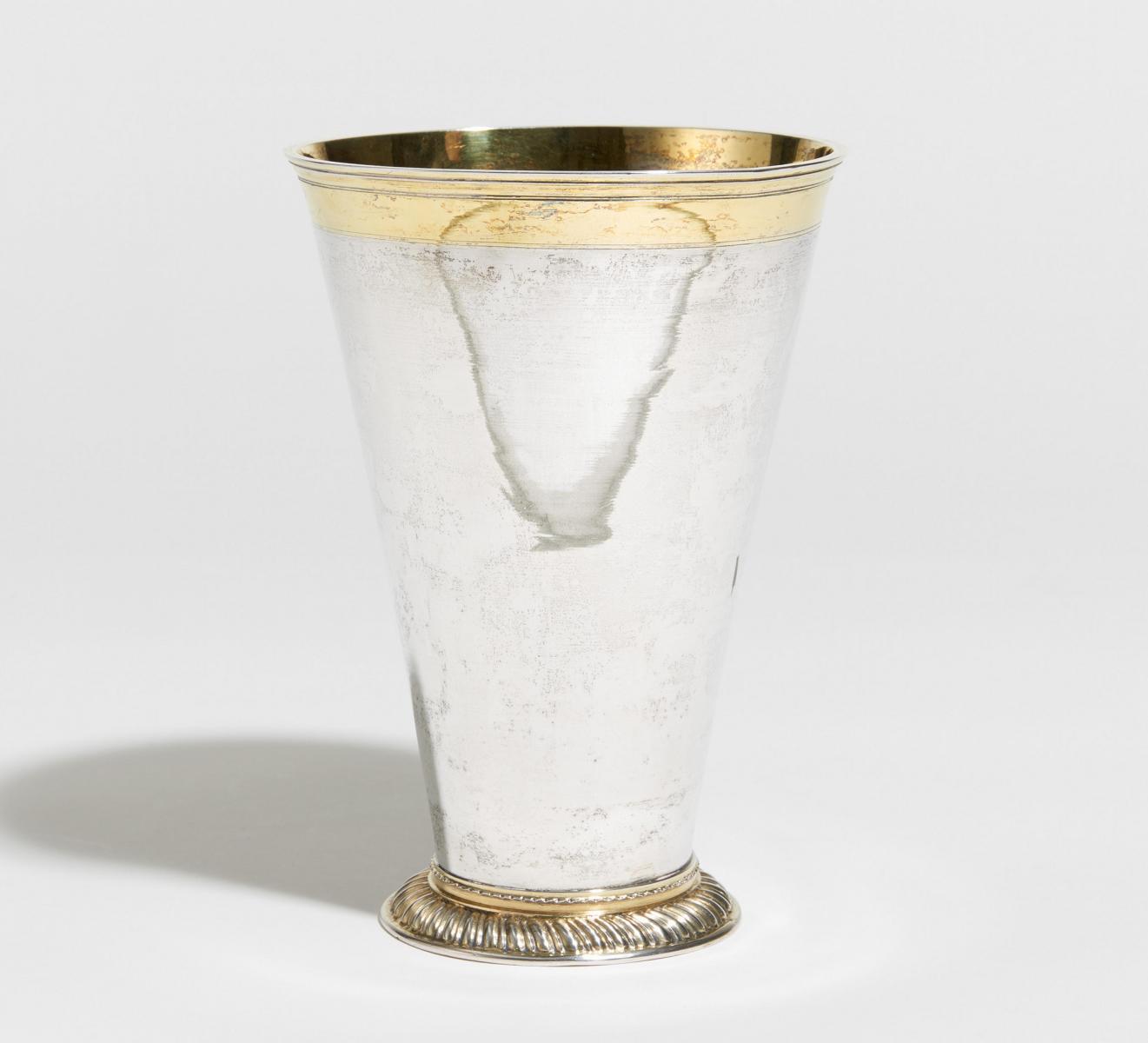 Beschreibung: Gewölbter Standring mit Godronenzier und glatter, konischer Wandung. Auf der