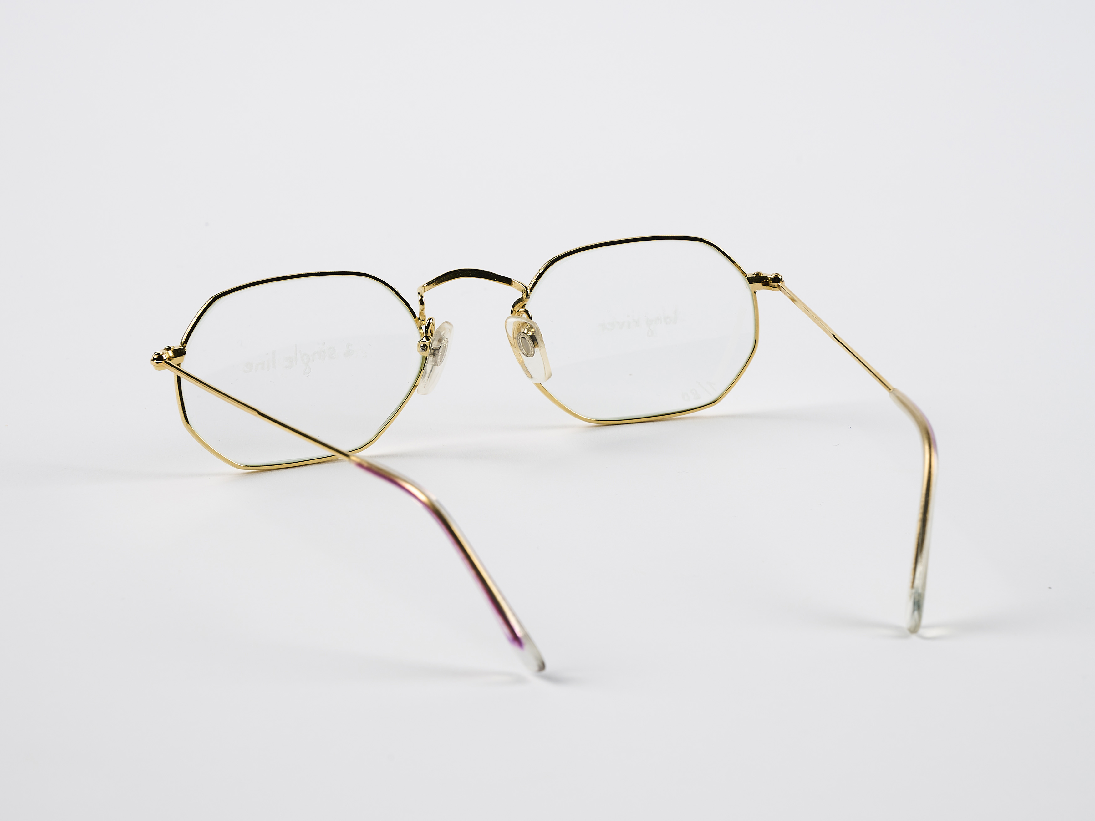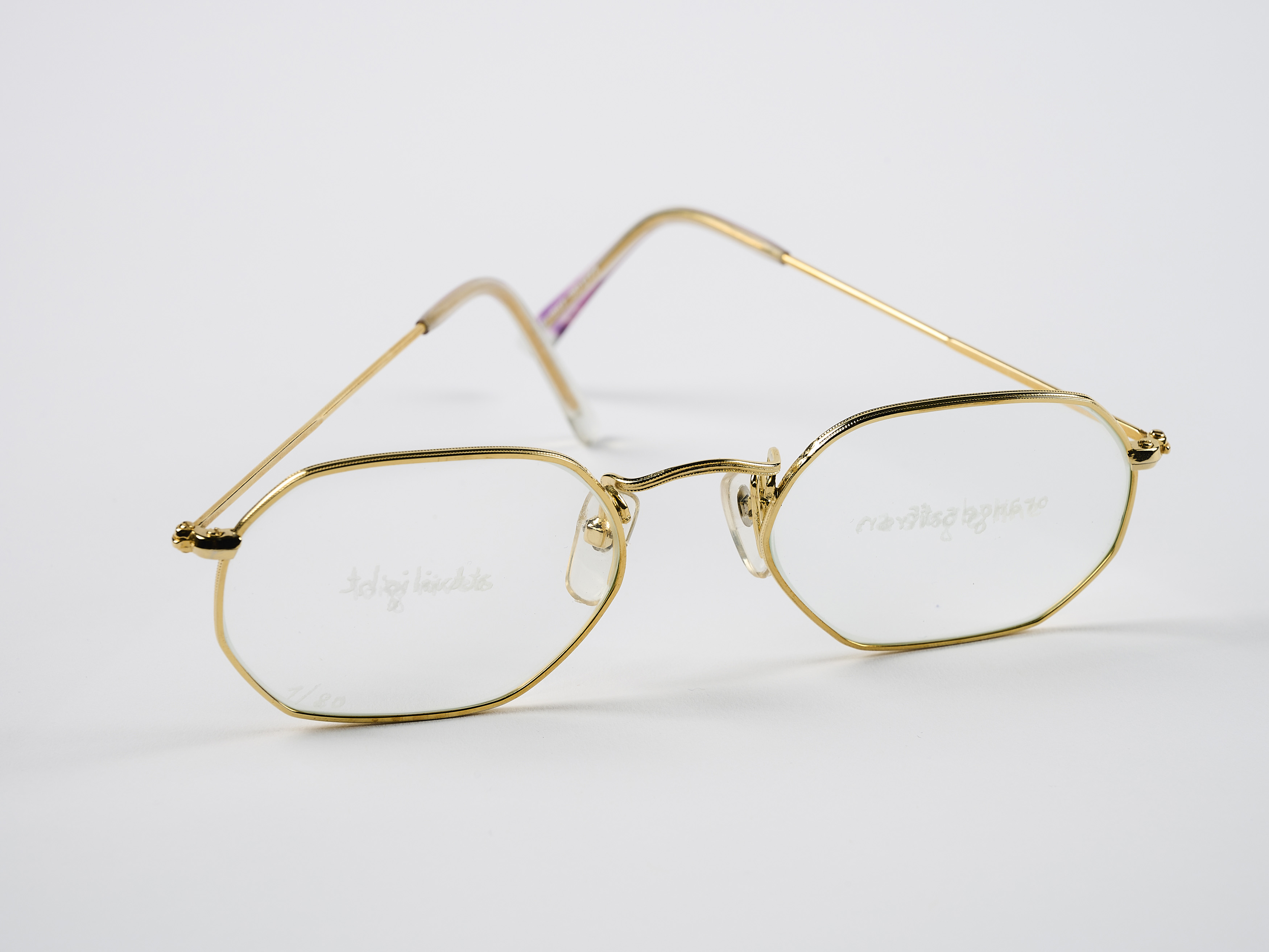 Technik: Brille mit goldfarbenem Gestell und gravierten Gläsern. Mit Brillenputztuch in Brillenetui.