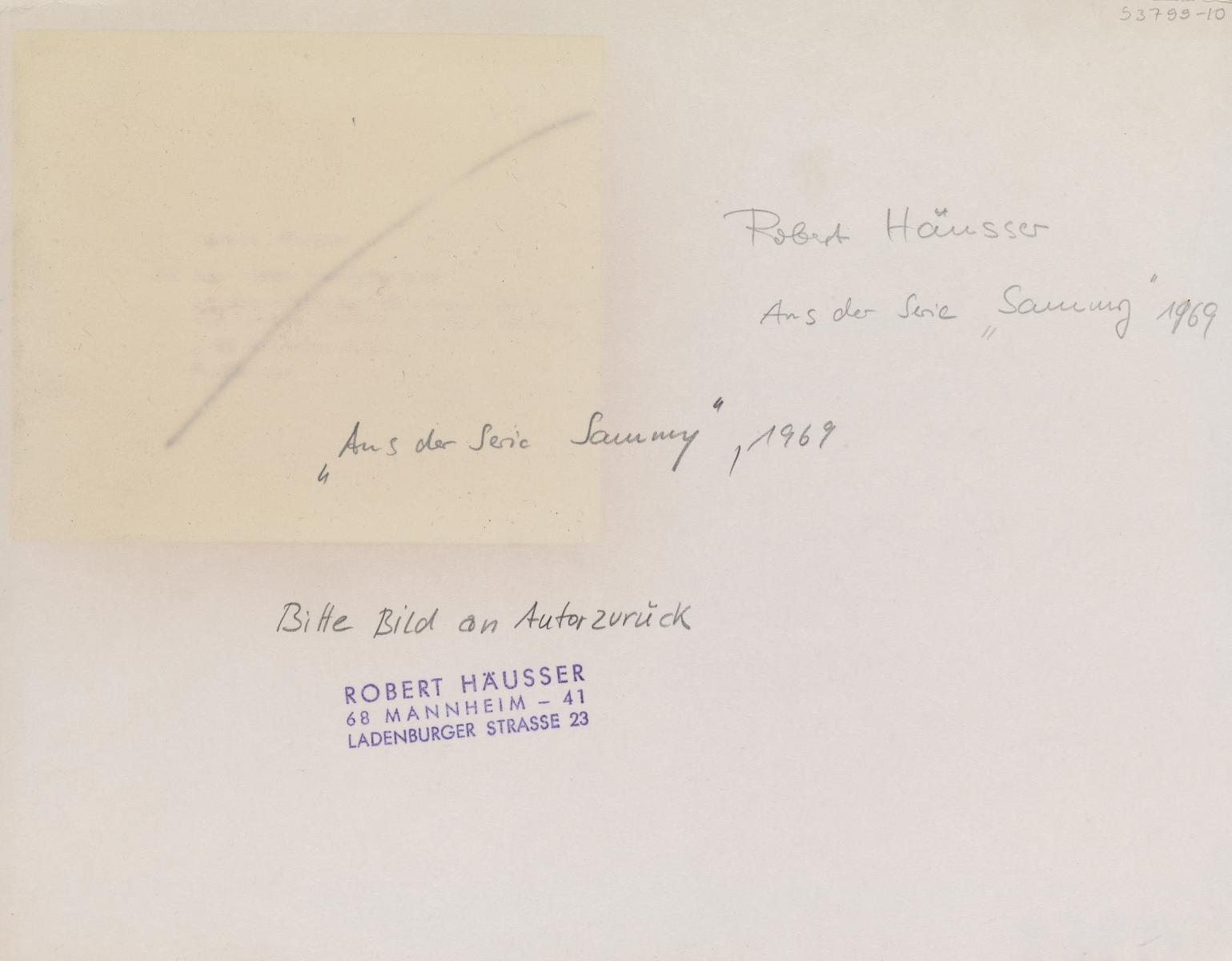 Aus der Serie "Sammy". 1969. Vintage. Gelatinesilberabzug auf Agfa-Papier. Originalrückkarton. 20,1 x 28,7cm (Originalrückkarton: 23,4 x 30cm). Ausstellungs- sowie Urhebervermerk mit Bleistift und Copyrightstempel des Fotografen verso..