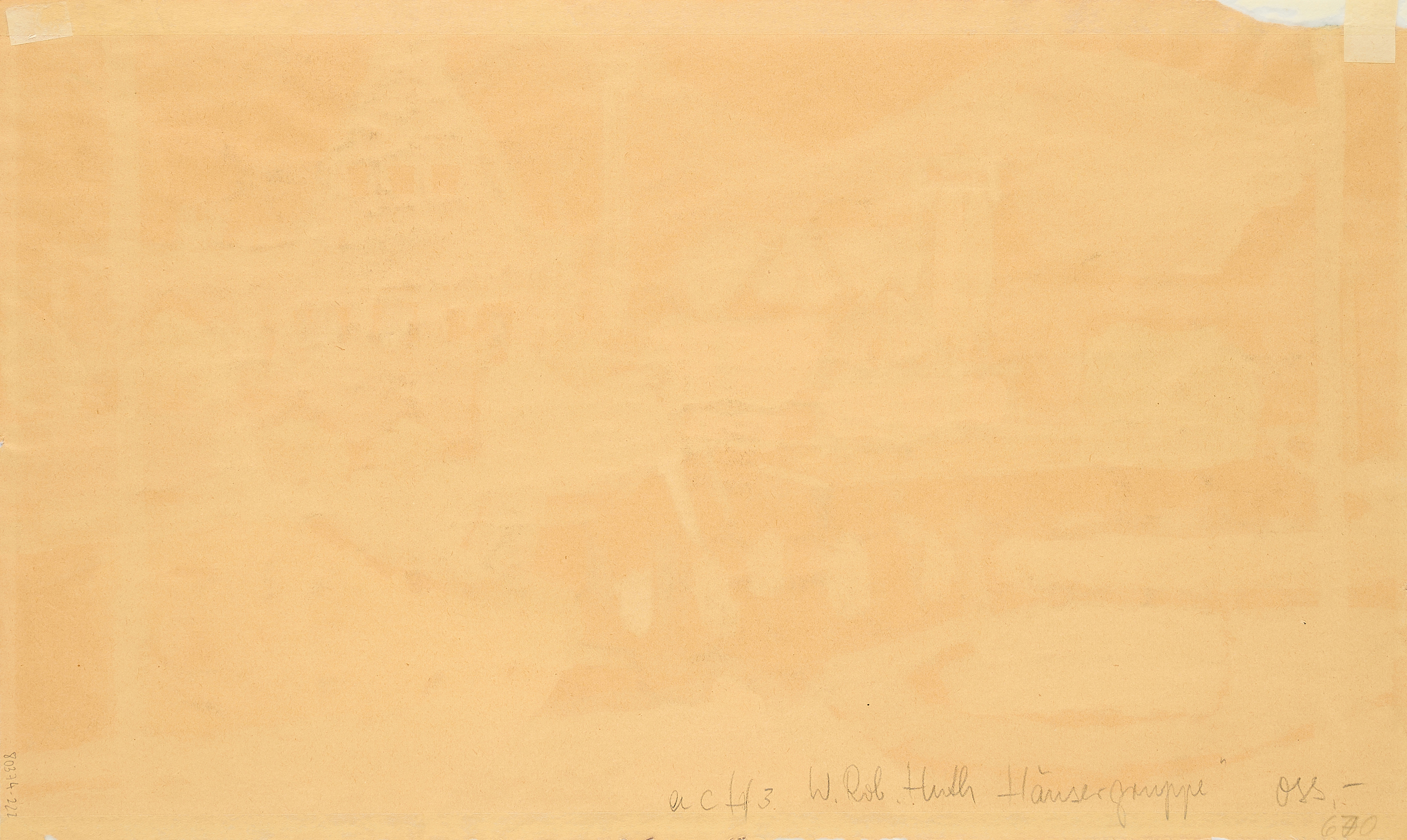 Im ehemaligen Passepartoutausschnitt leicht verblasst. Obere Rechte Ecke mit Papierverlust (hinterklebt, ca. 1 x 5cm) sowie Papierverluste an der Unterkante, max. ca. 0,4 x 0,4cm (Blatt wohl aus Block gelöst worden). Zwei Einrisse an den kurzen Seiten (jeweils ca. 0,3cm). Verso Reste alter Montierung sowie unregelmäßig gebräunt. Ansonsten guter Zustand.