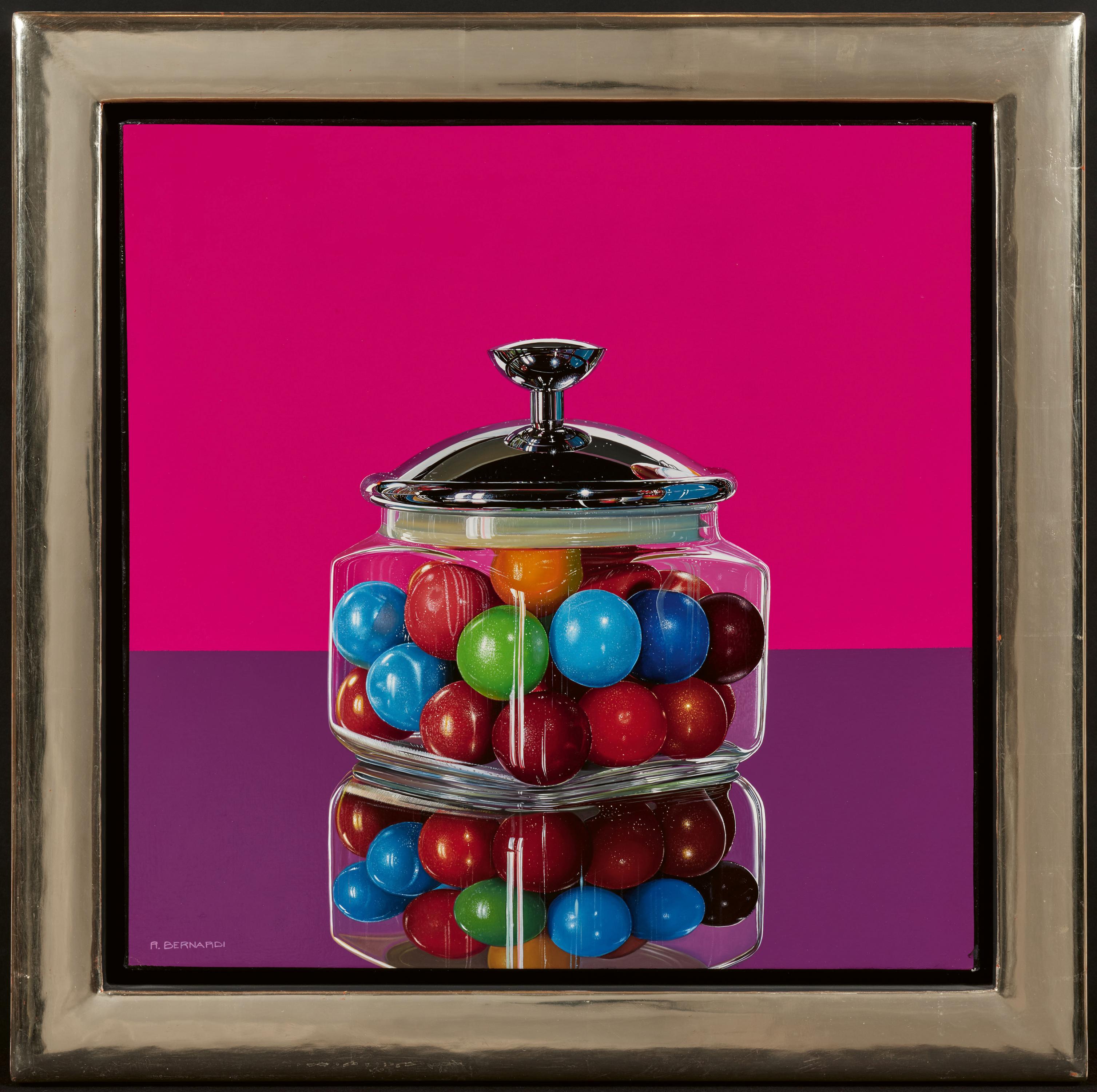 Bezeichnung: Signiert unten links: R. BERNARDI. Betitelt, datiert und signiert verso auf der umgeschlagenen Leinwand oben: PINK CANDIES 2015 RBernardi. Zudem mit Werkangaben versehen.