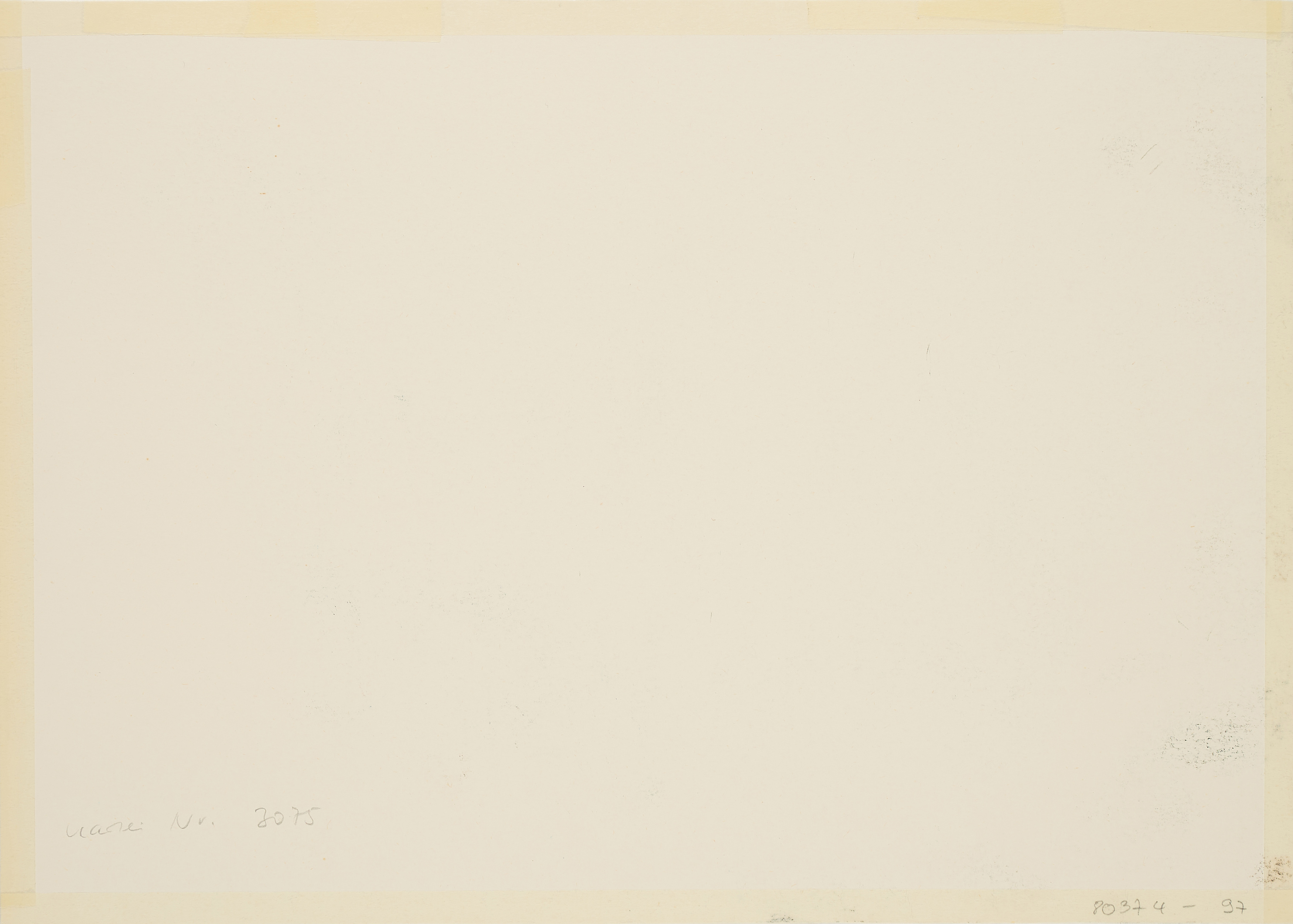 Im ehemaligen Passepartoutausschnitt minimal gebräunt. Möglicherweise minimal verblasst. Minimale Bräunungsflecken. Minimale Kratzspuren an der Oberfläche (herstellungsbedingt?). Verso umlaufend Reste alter Montierung sowie leichte Farbspuren. Ansonsten guter Zustand.
