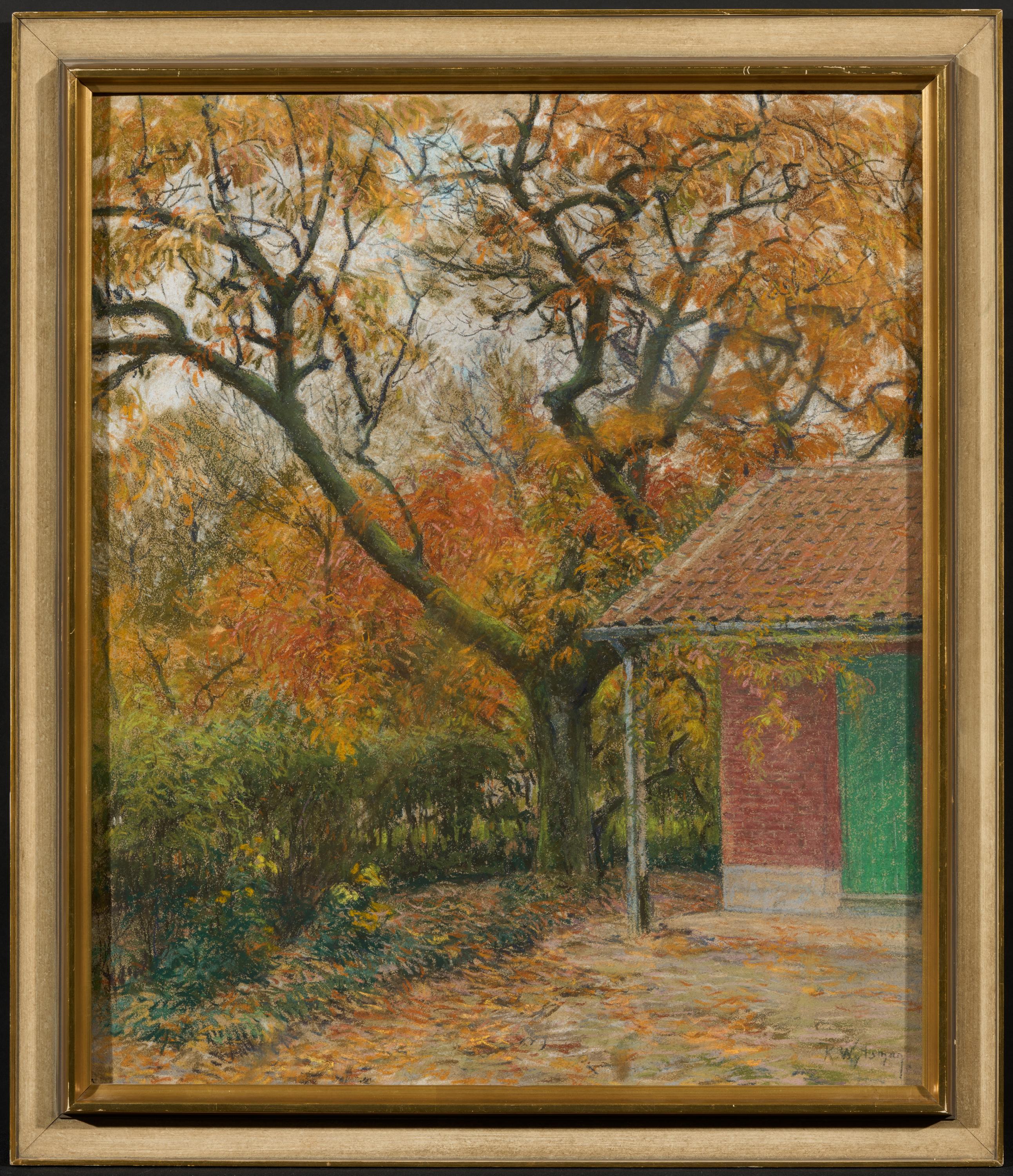Rodolphe Wytsmann hat das Motiv der blühenden Kirschbäume mehrfach dargestellt. Hier ist es nun ein alter Kirschbaum im Herbst, den der belgische Spätimpressionist "portraitiert". Rodolphe Wytsman gehörte als eines der Gründungsmitglieder der Künstlergruppe "Les Vingts" gemeinsam mit Theo van Rysselberghe, James Ensor und Ferdinand Khnopff zum "inner circle" der Brüsseler Avantgarde Ende des 19. Jahrhunderts.