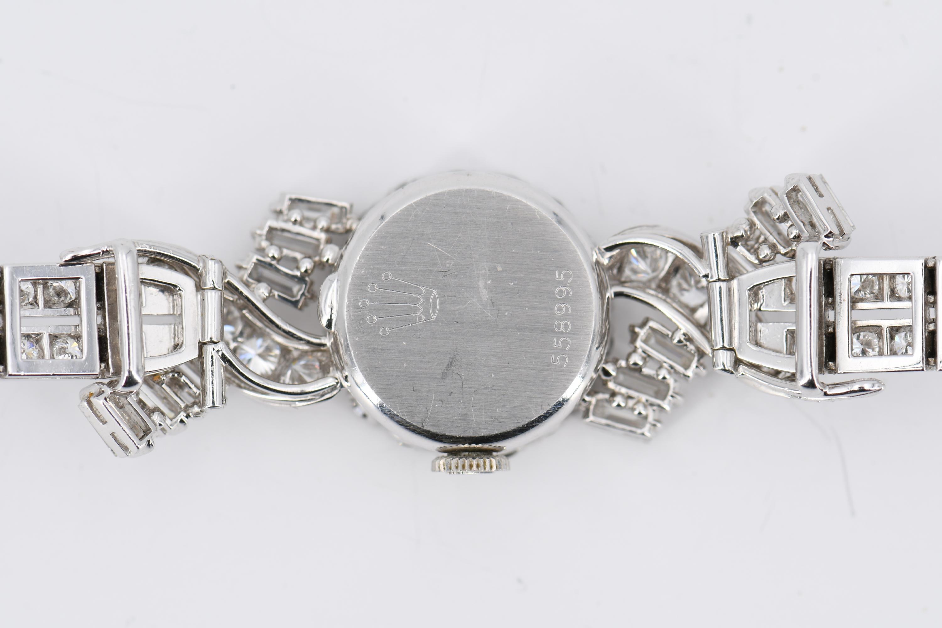 Gehäuse/Armband: 950/- Platin mit Brillantbesatz, Gliederarmband mit Brillantbesatz, Faltschließe mit Sicherheitsverschluss, Zffbl. weiß, aufgesetzte Indizes.