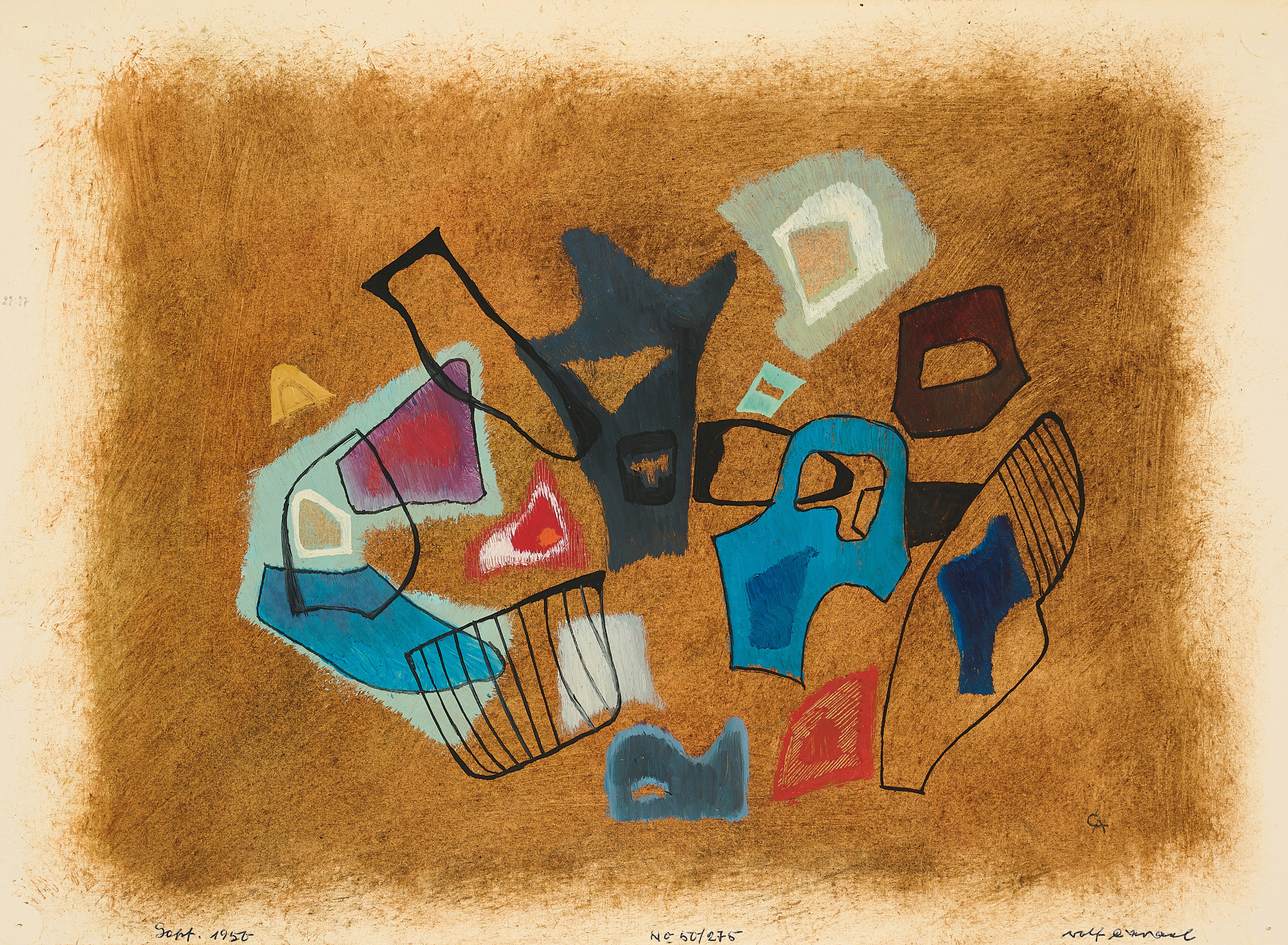 Bezeichnung: Monogrammiert, datiert, bezeichnet und signiert unten: CA (ligiert) Sept. 1950 No 50/275 rolf cavael.