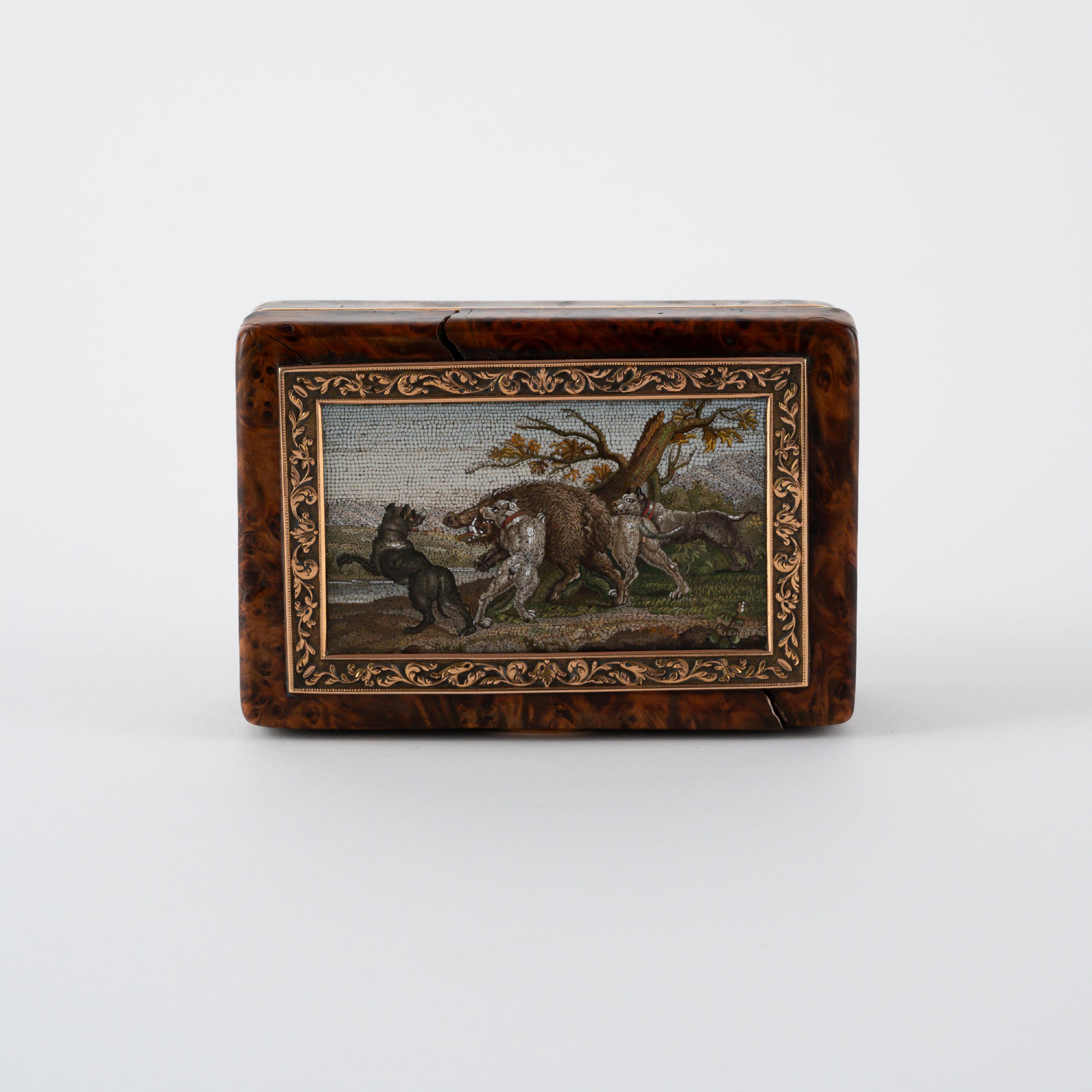 AUßERGEWÖHNLICHE TABATIERE MIT MIKROMOSAIK.