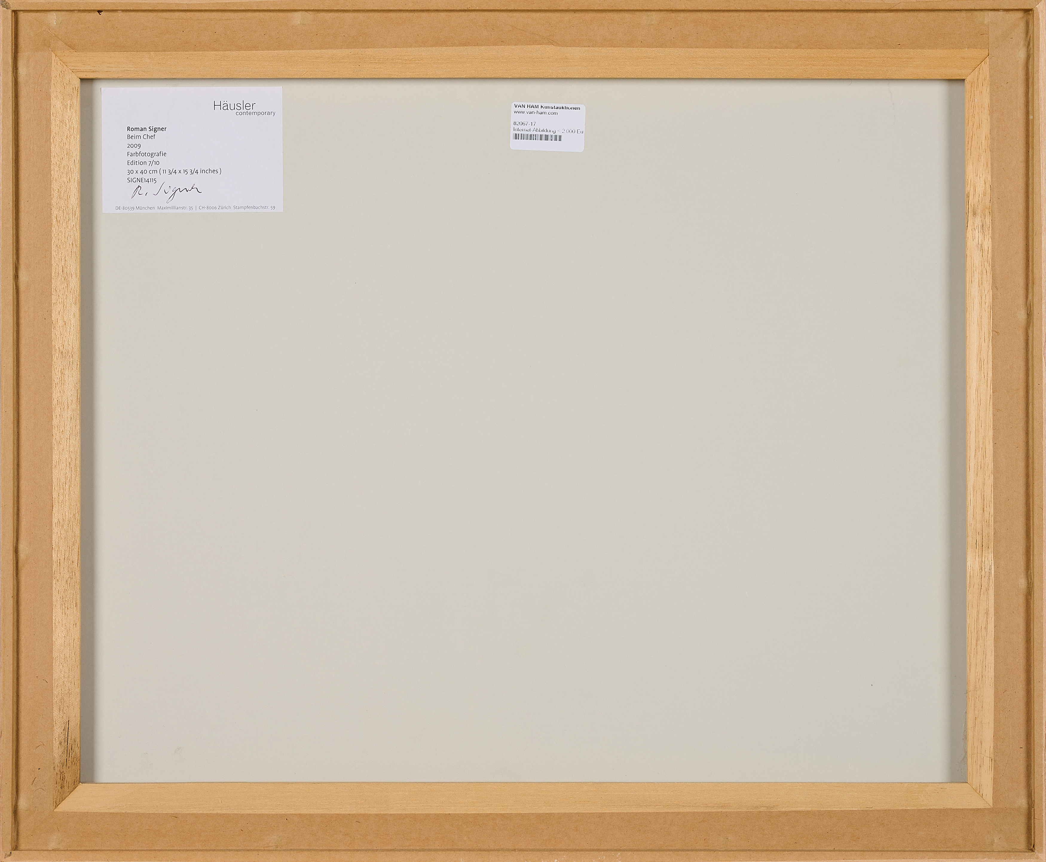 Bezeichnung: Signiert sowie typografisch nummeriert verso auf Etikett.