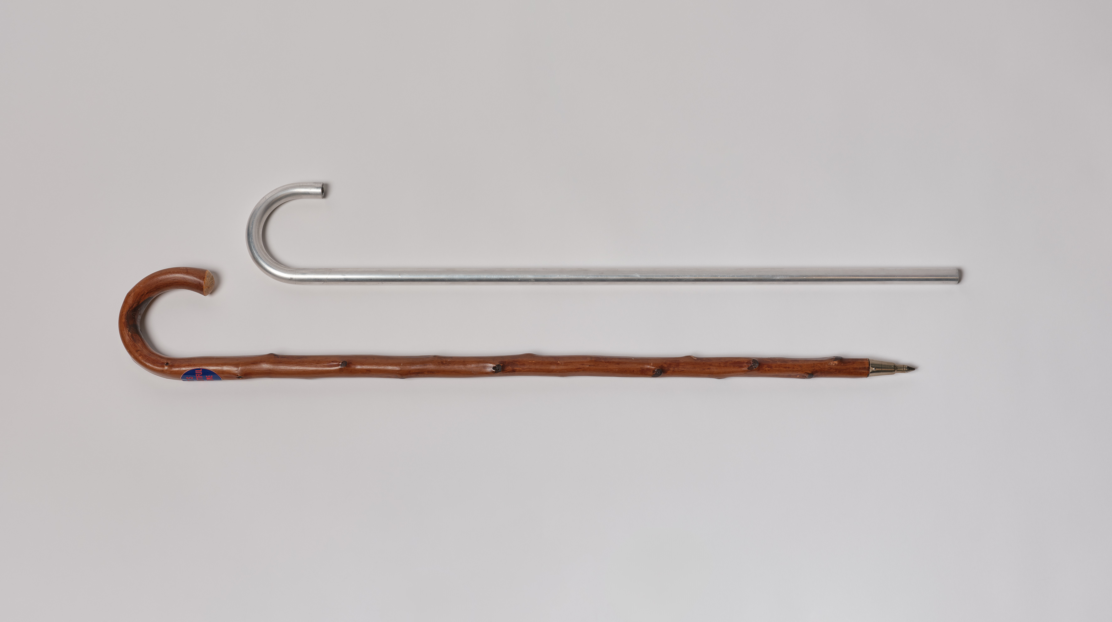 Technik: Gebogenes Aluminiumrohr und Spazierstock.