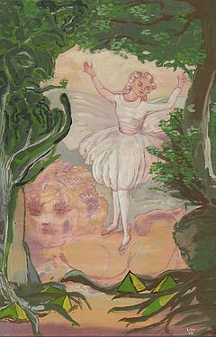 Technik: Kaseinfarbe auf Papier, auf Papier geklebt.