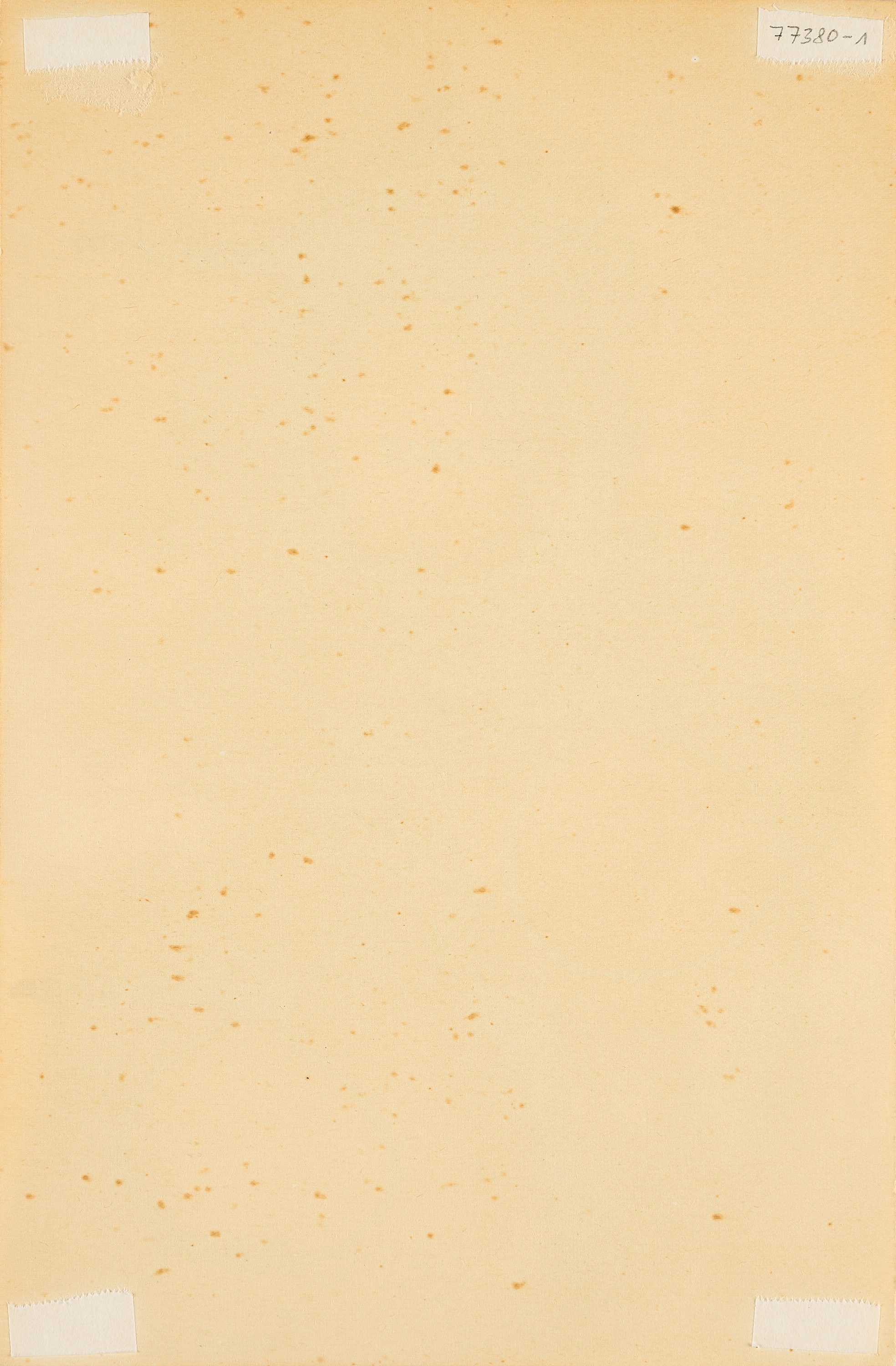 Herstellungsbedingt minimal gewellt. Minimal gebräunt und leicht gebräunt an den Kanten. Minimale Stockflecken. Minimale Knickspur in der oberen linken Ecke. Vereinzelt minimale Bestoßungen der Kanten. Verso leicht gebräunt, leichte Stockflecken und Reste alter Montierung (schlagen recto leicht durch). Ansonsten guter Zustand.
