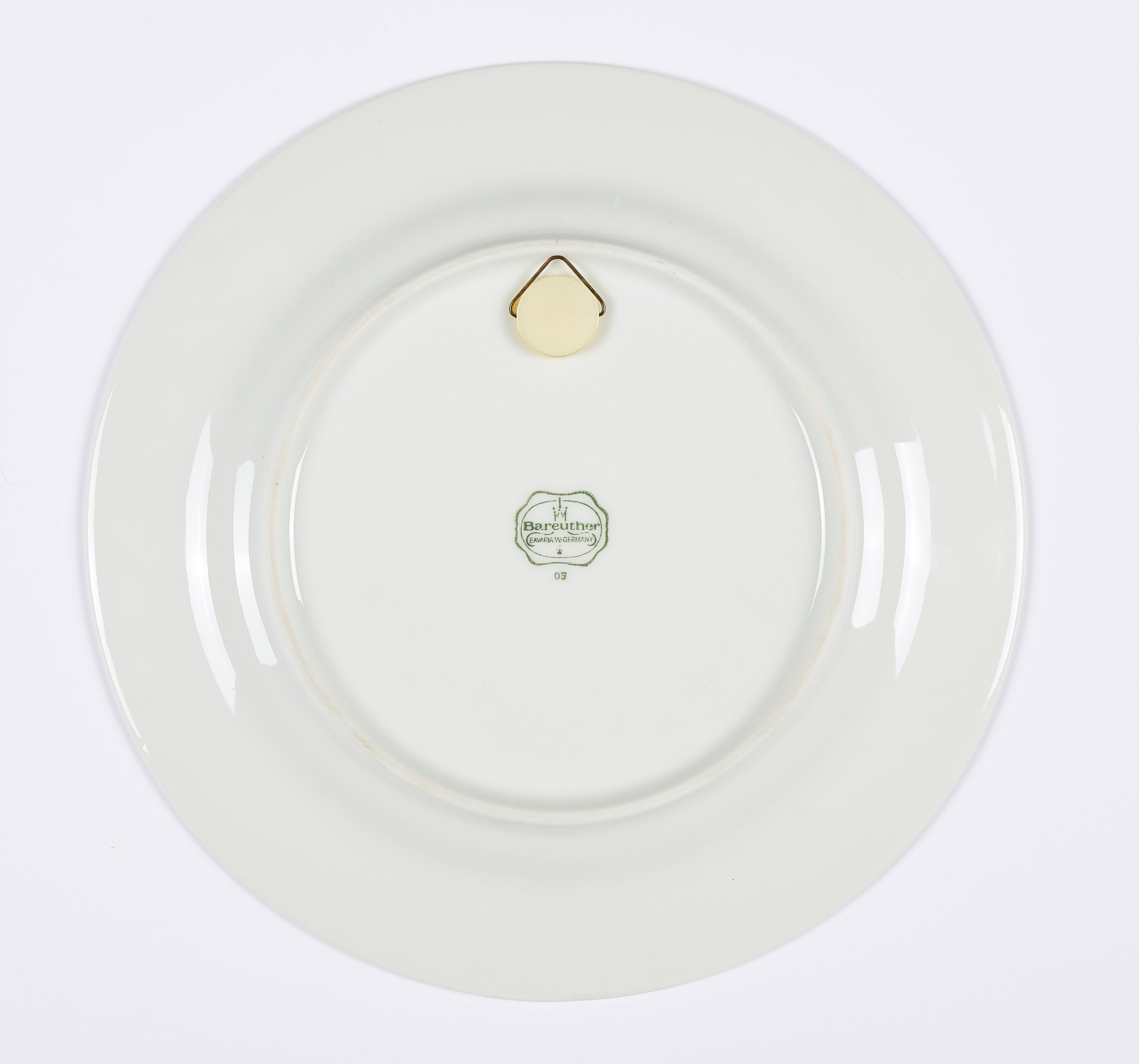 Technik: Farbserigrafie auf Porzellan. Ø 27cm.