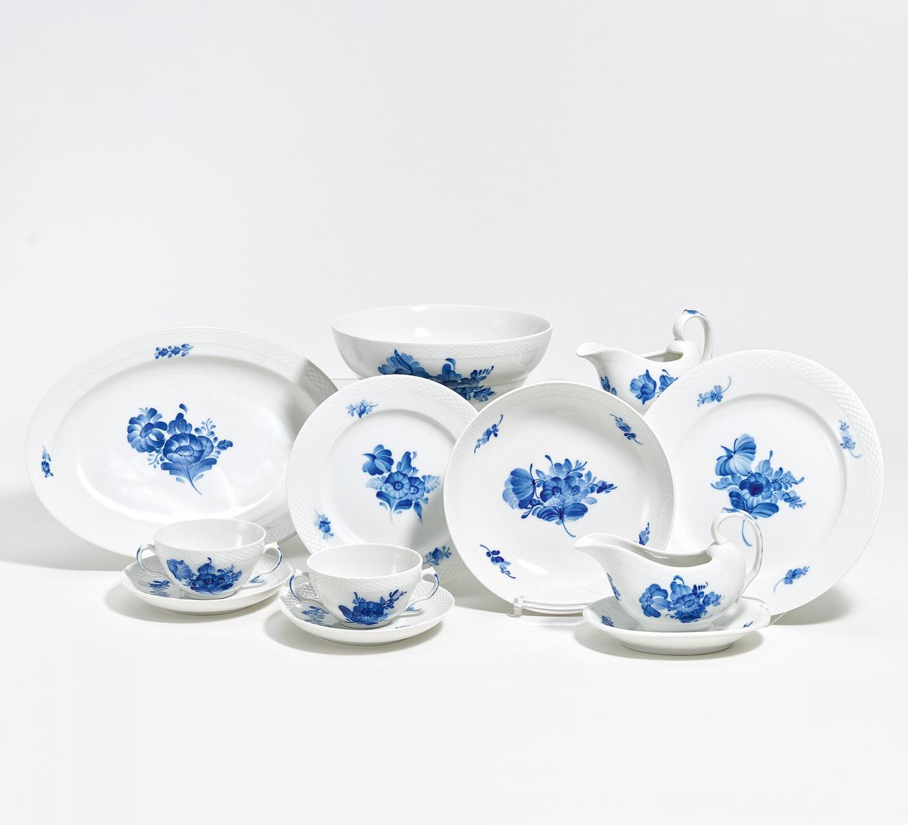 SPEISESERVICE 'BLAUE BLUME' FÜR 12 PERSONEN.