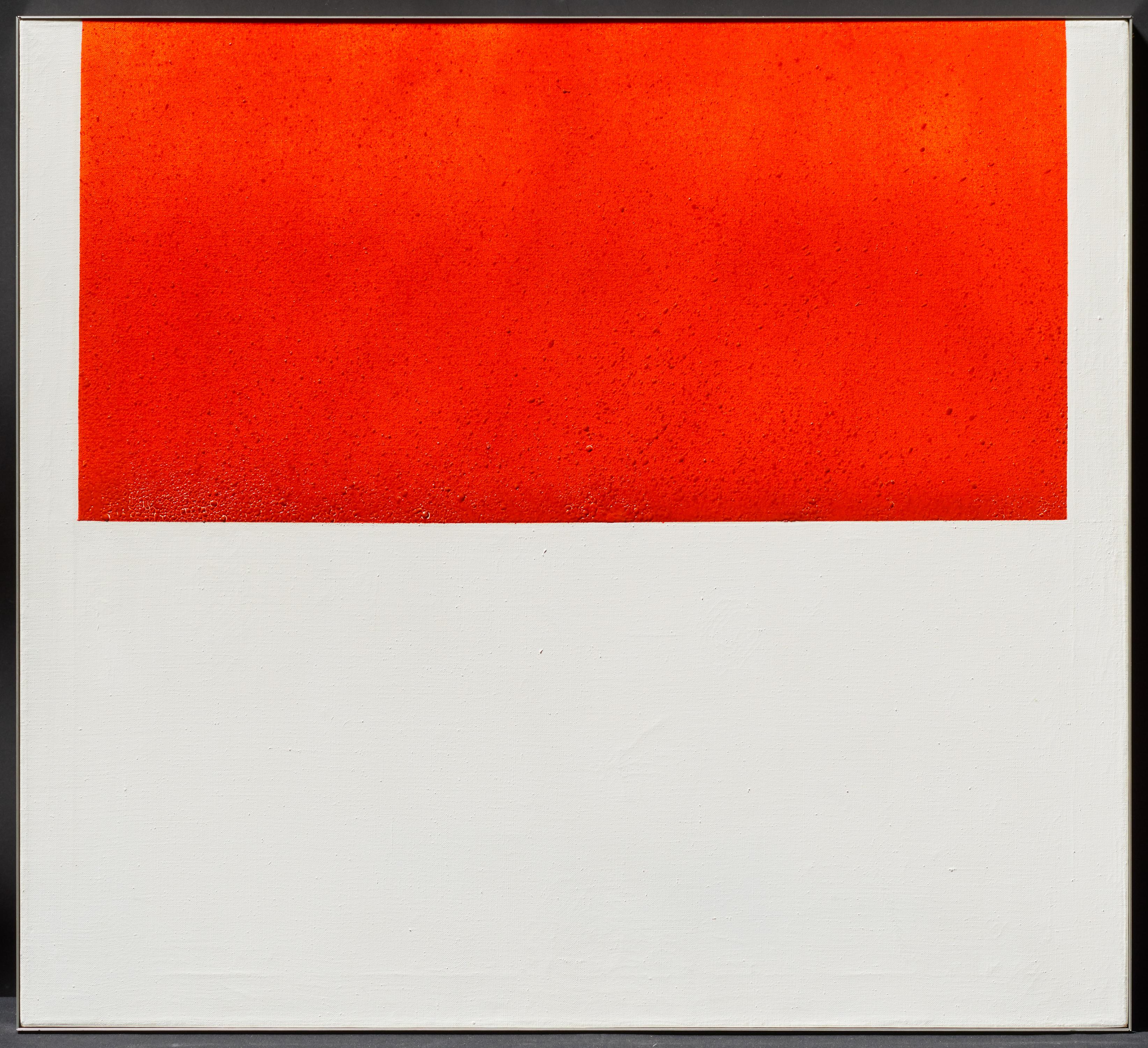 Das angebotene Werk spiegelt genau diese künstlerische Intention wieder. Das rote Rechteck kann auf der weiß grundierten Leinwand unbeeinflusst hervortreten und in den Raum und auf den Betrachter wirken.