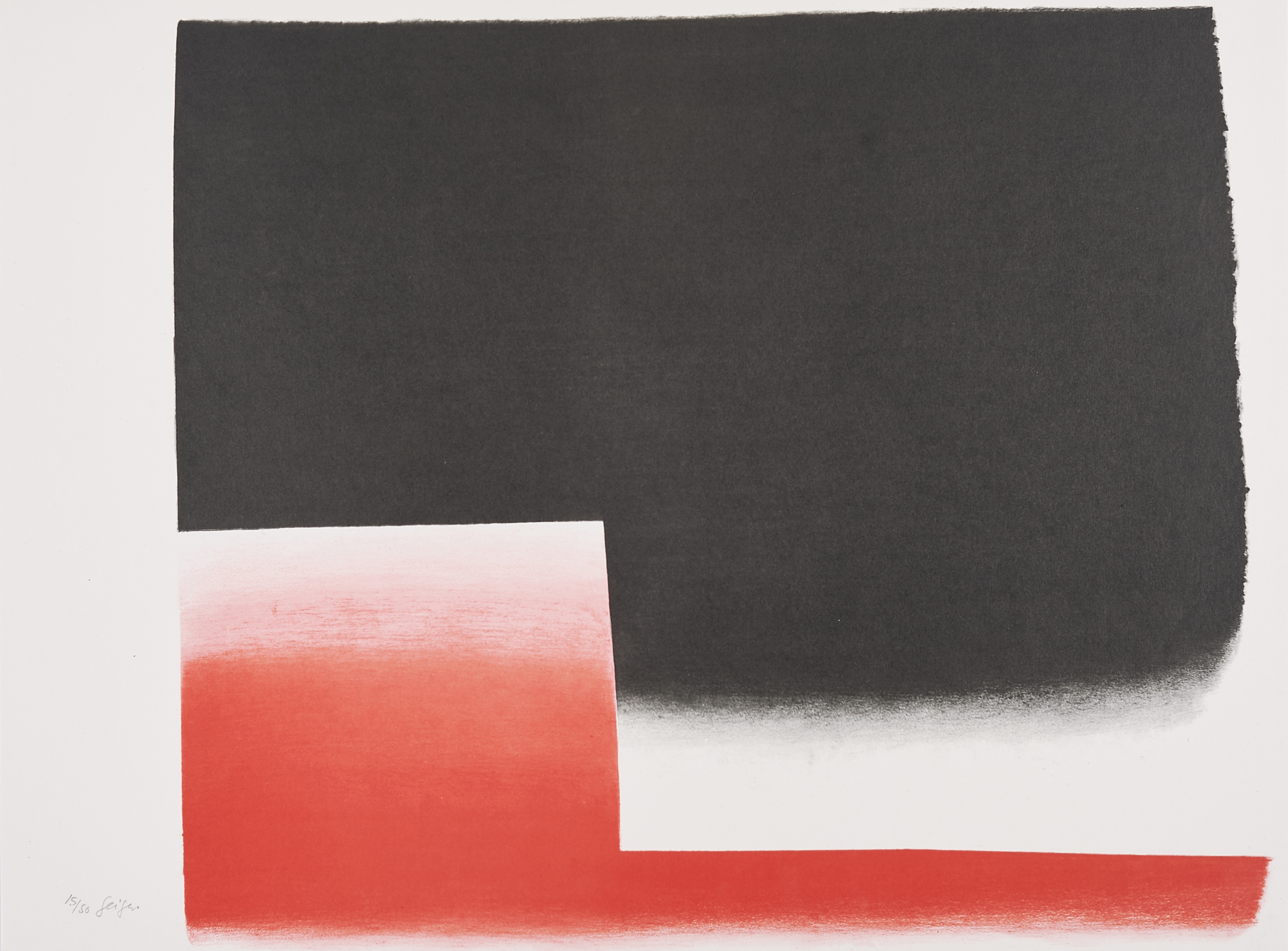 a) rot-schwarz. 1958. Farblithografie auf leichtem Karton. 39,5 x 45cm (40 x 54,5cm).