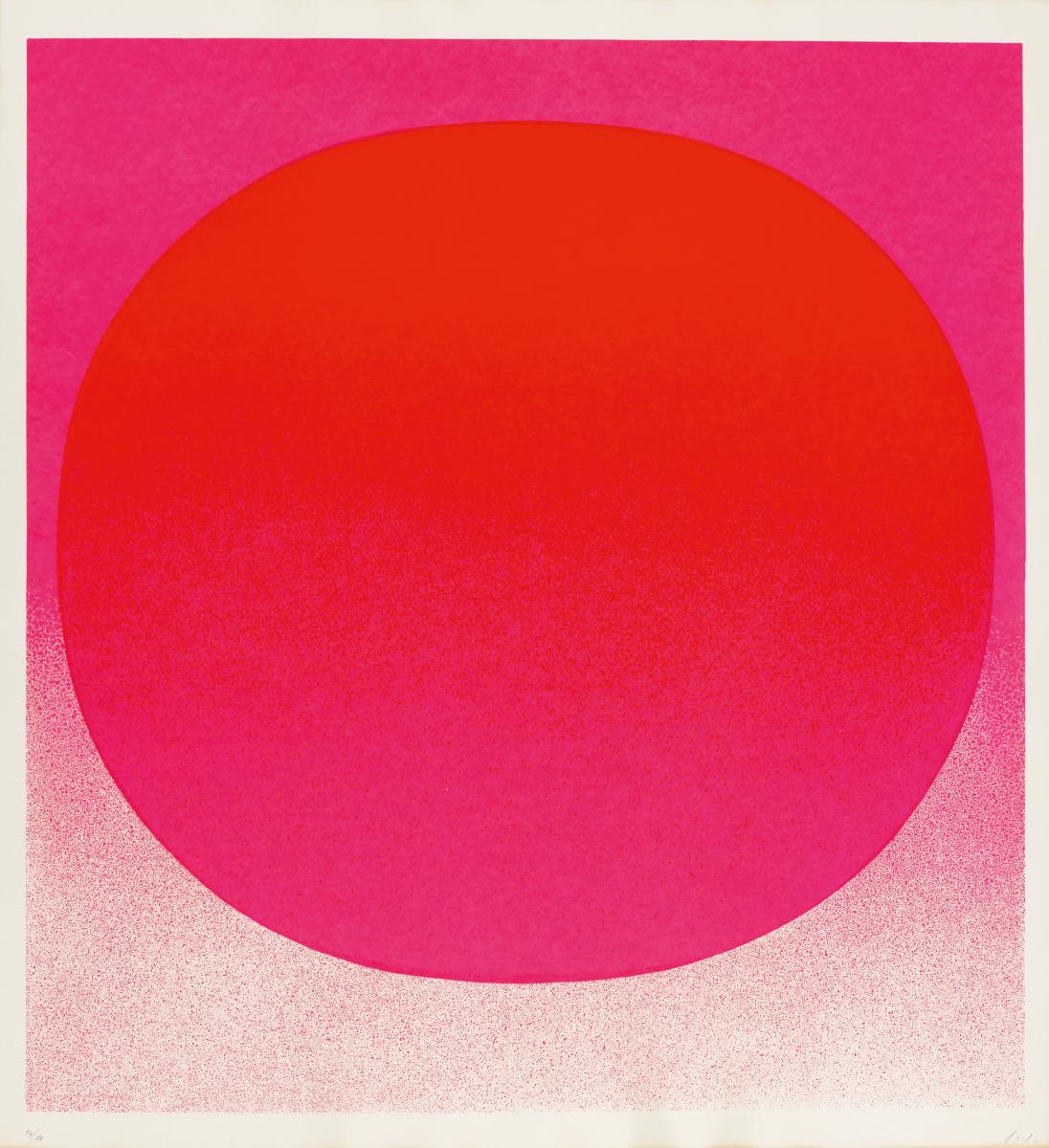 rot-orange auf leuchtrot kalt mit Spritzer auf weiß. 1968. Farbserigrafie auf Karton. 67 x 62cm (72,5 x 67cm). Signiert und nummeriert. Galerie Wilbrand, Köln (Hrsg.). Ex. 92/100. - Blatt leicht gewellt. An den Kanten gebräunt. Leichte Verschmutzungen im unteren Randbereich. Verso minimale Verschmutzungen.