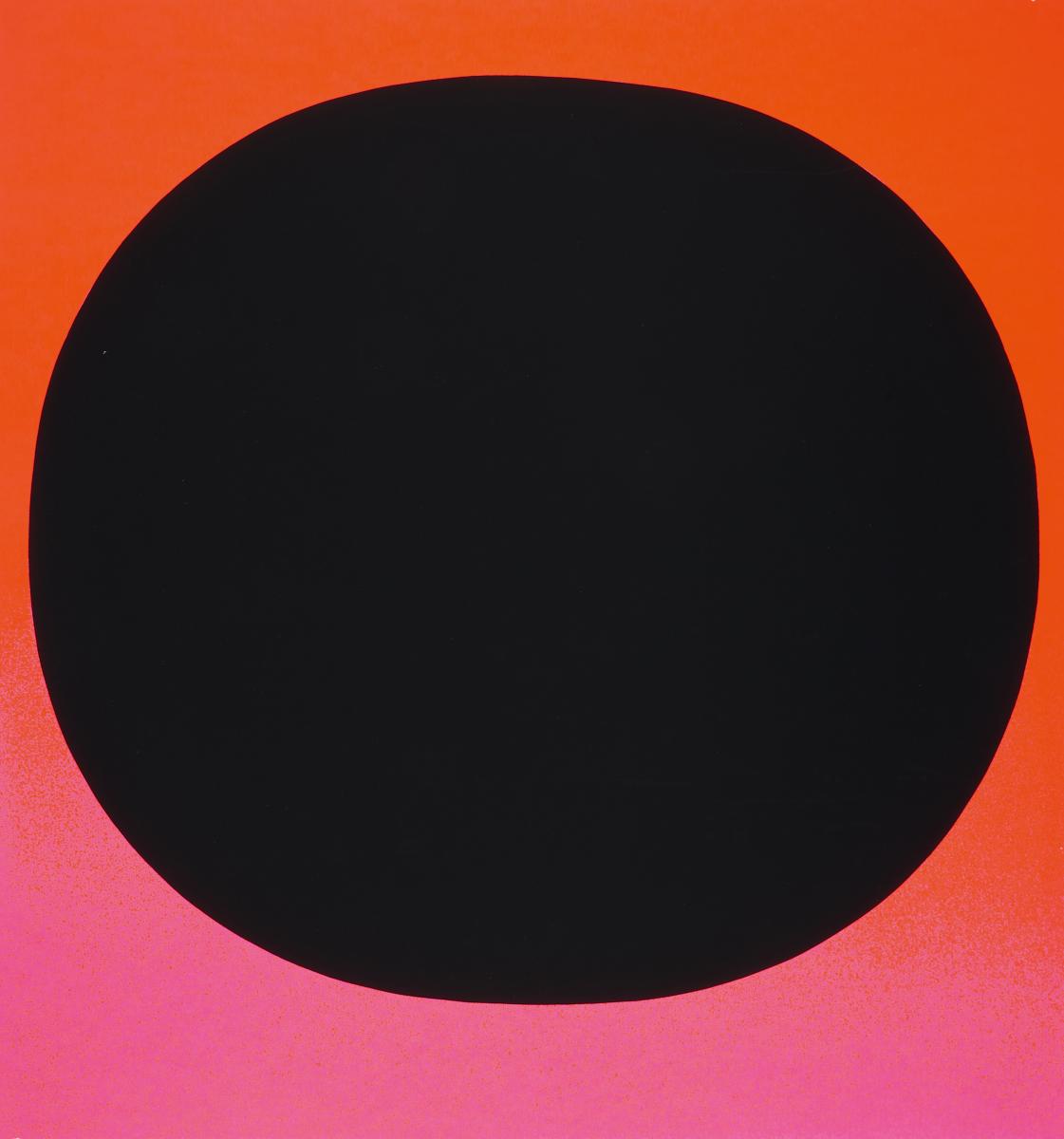 Rundes Schwarz/schwarz auf leuchtrot kalt bis rot-orange. 1968. Farbserigrafie auf Schoellerhammer. 66,5 x 62,5cm Signiert und nummeriert (verso). Edition '68, documenta-Foundation, Kassel (Hrsg.). Ex. 45/150. - Untere Kante minimal bestoßen. Minimale Oberflächenbereibungen. Verso leichte Verschmutzungen.