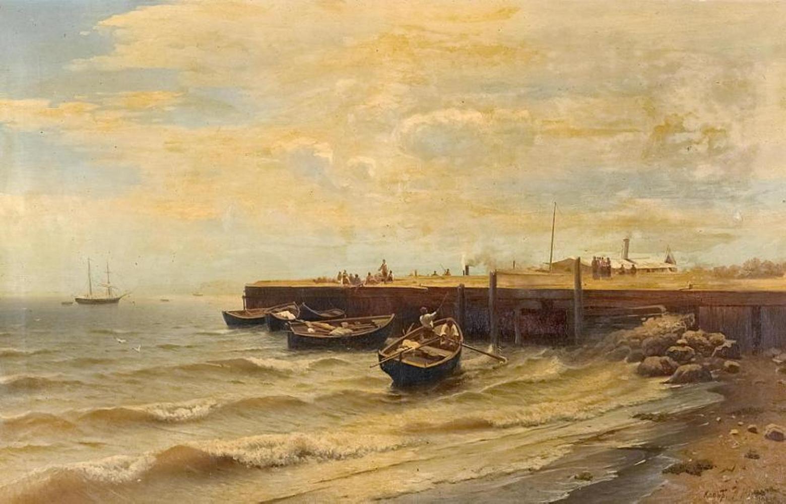 Hafen am Schwarzen Meer. Unten rechts unleserlich bezeichnet. Öl auf Leinwand. 79,5 x 124,5cm. Rahmen.