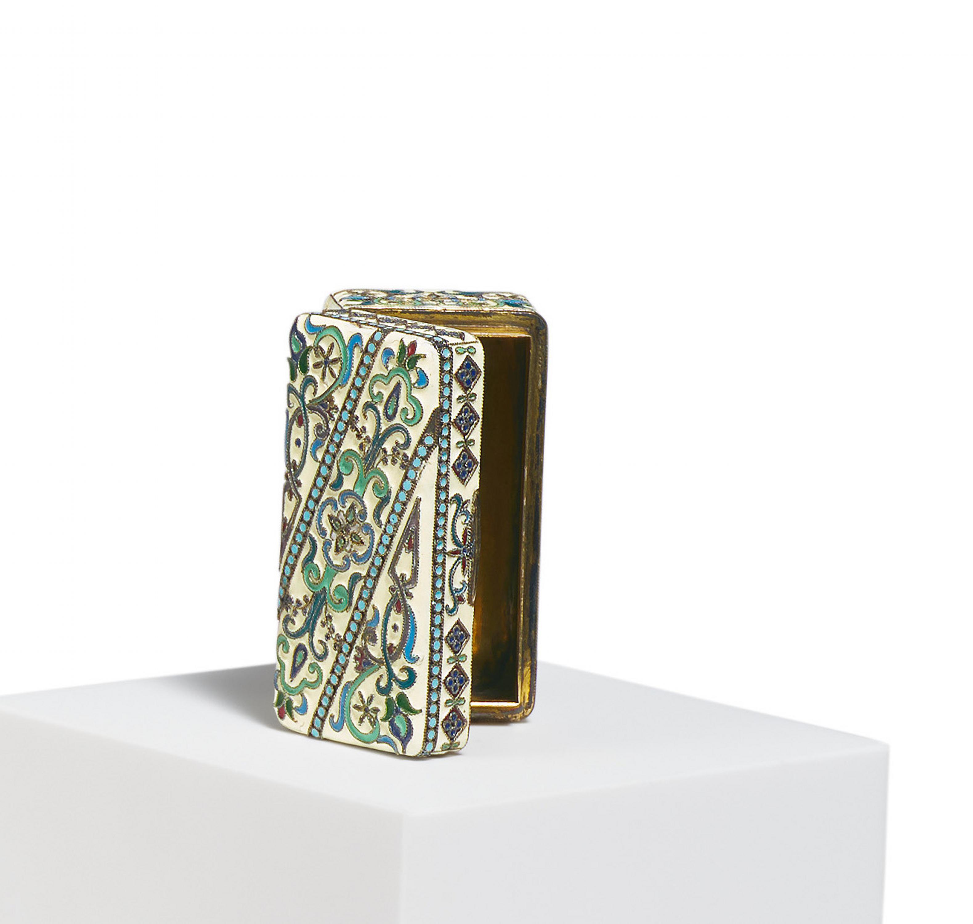 Technik: Silber mit Innenvergoldung. Farbiger Emaildekor, opak.