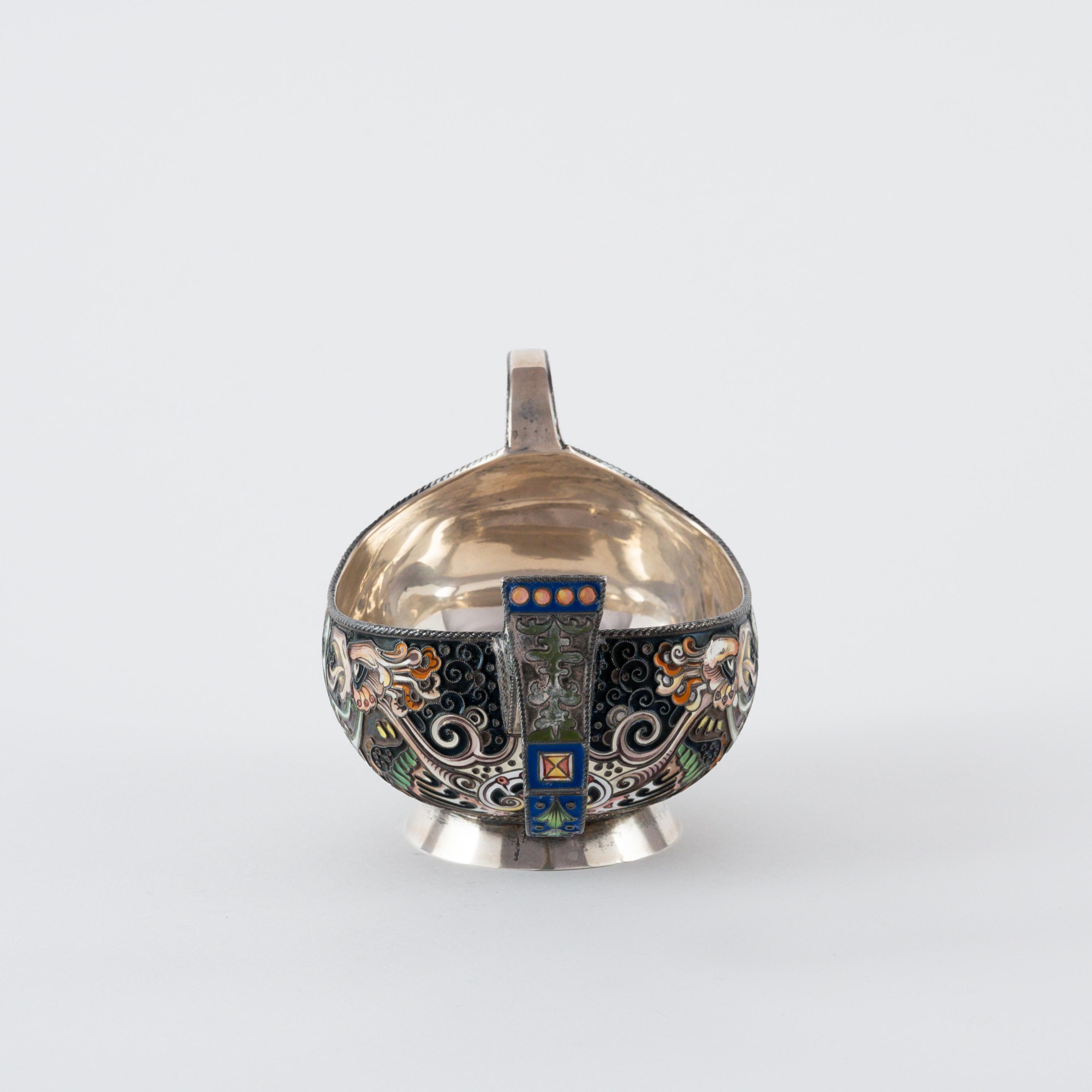 Technik: Silber. Transluzides und opakes Cloisonnédekor.
