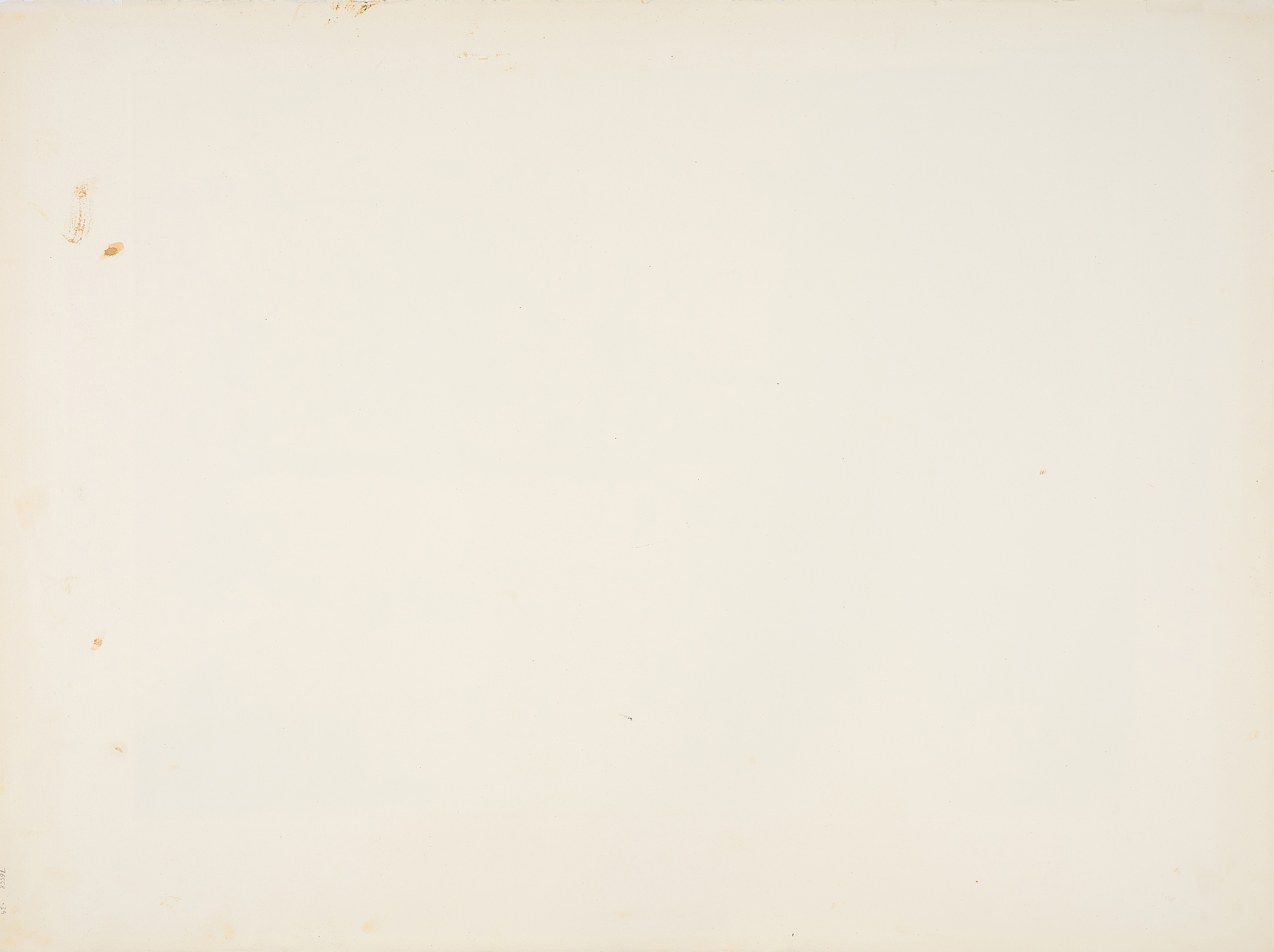 Leicht fleckig und unregelmäßig gebräunt. Leichte Fingerabdrücke in den Randbereichen. Leichter Feuchtigkeitsfleck in der unteren rechten Ecke. Vereinzelt leichte Griffspuren. Kleiner Stockfleck oben links. Verso Reste alter Montierung sowie vereinzelt leichte Verschmutzungen. Ansonsten guter Zustand.