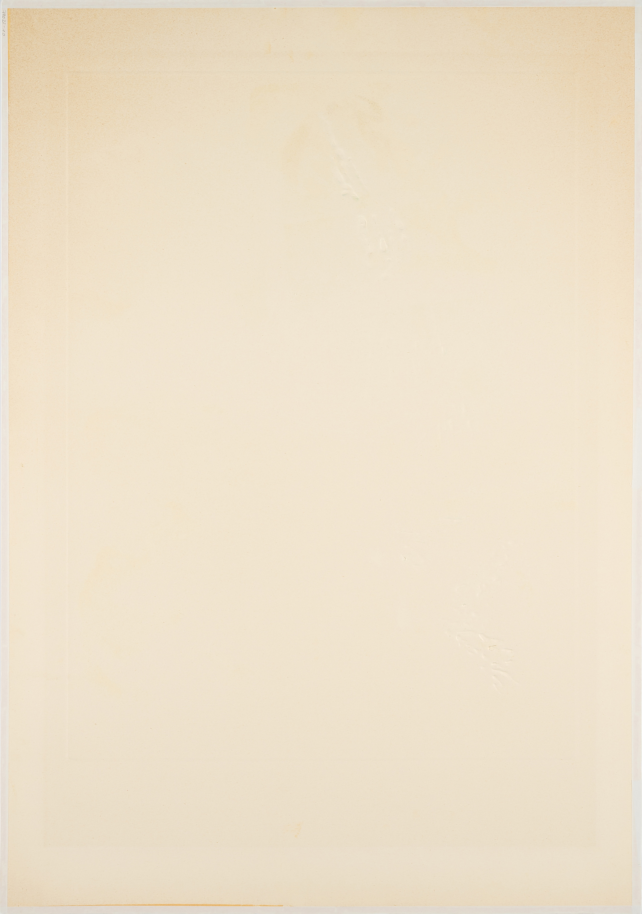 Technik: Radierung auf Farblithografie mit Prägung auf Velin.