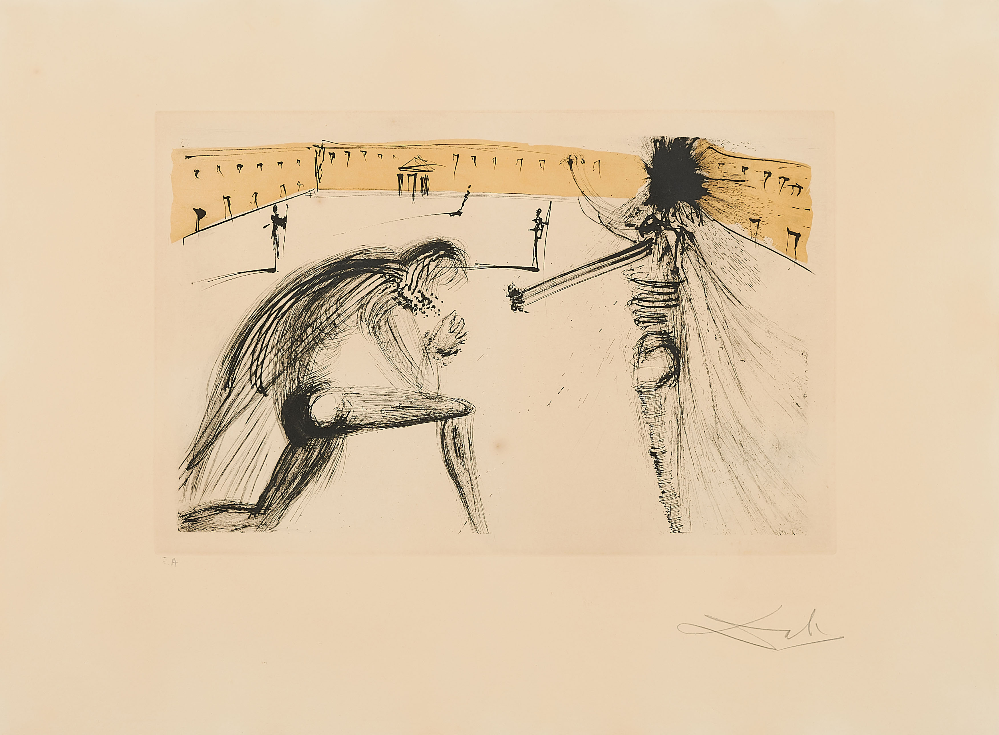 Aus der 12-teiligen Serie "Calderón, La Vie est un songe". Außerhalb der Auflage von 250 arabisch nummerierten Exemplaren auf Richard de bas und 25 römisch nummerierten Exemplaren auf Japan.