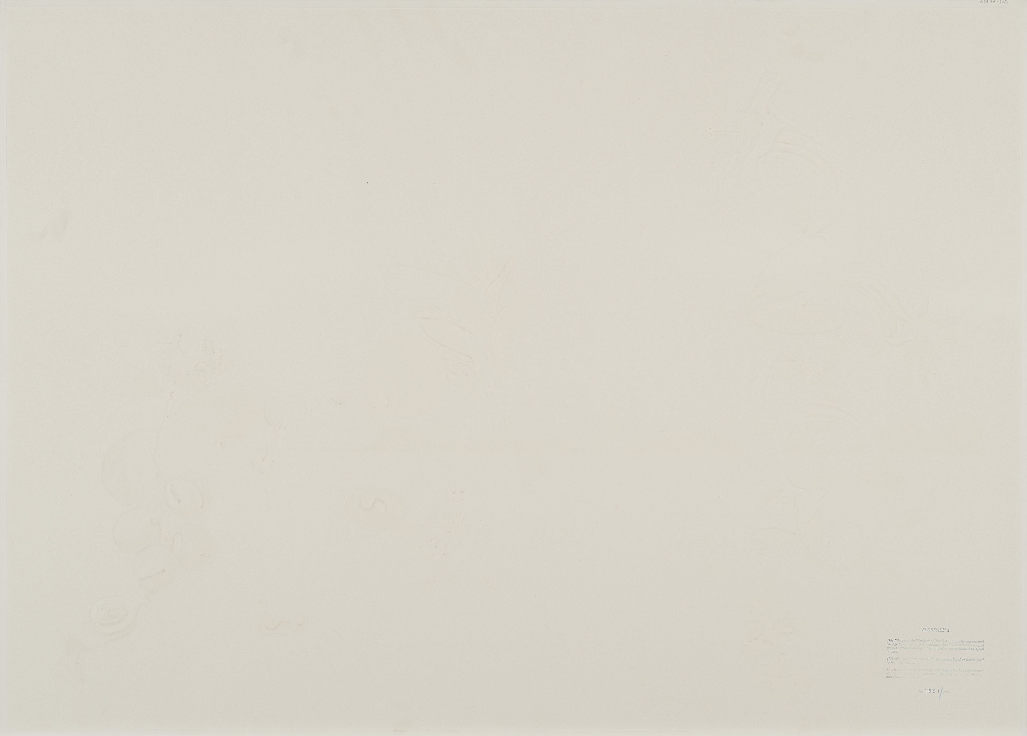 Flordali. 1981. Farblithografie auf Arches FRANCE (Wasserzeichen). 65 x 97cm (76 x 106cm). Bezeichnet sowie verso mit Stempelnummerierung versehen. WUCUA (Hrsg.). Ex. 1661/4880.
