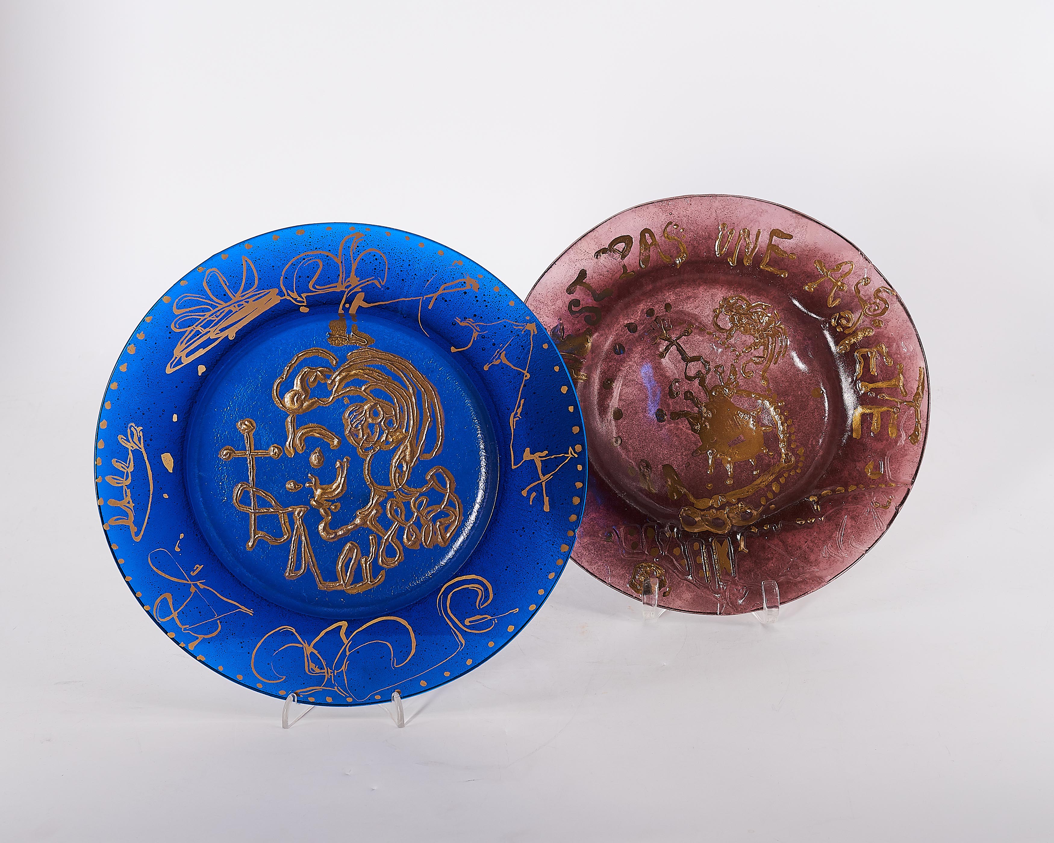 Technik: Konvolut von 2 Glasteller mit Golddekor. Maße jeweils: Ø 27cm.